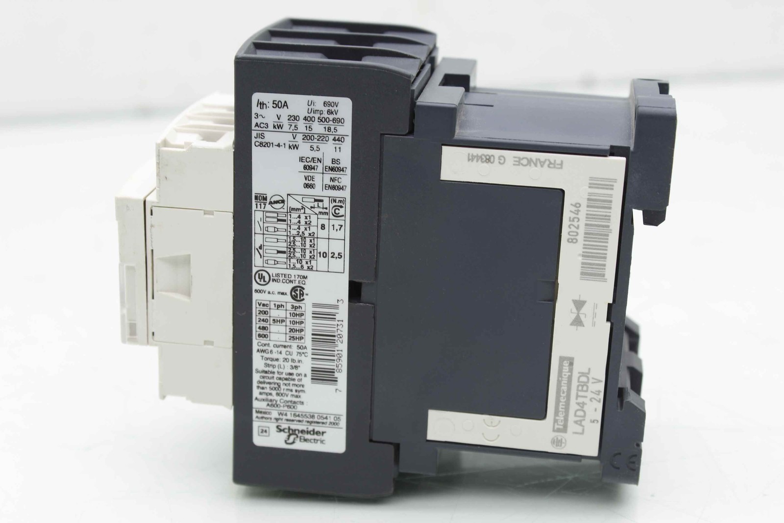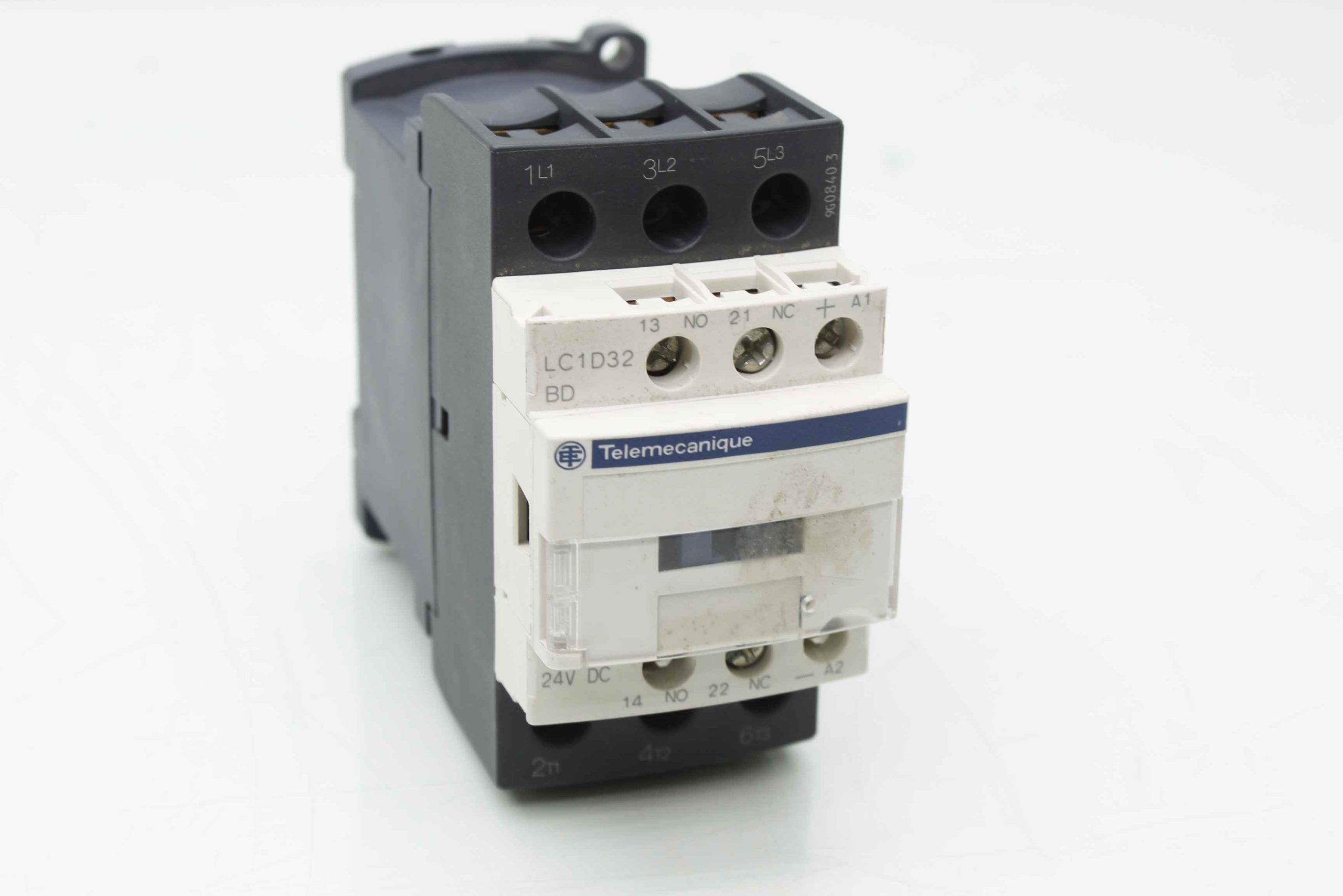 Here is a Schneider LC1D32BDÂ contactor with a 24V DC coil. It is in good condition with minimal cosmetic wear such as scratches and scuffs.