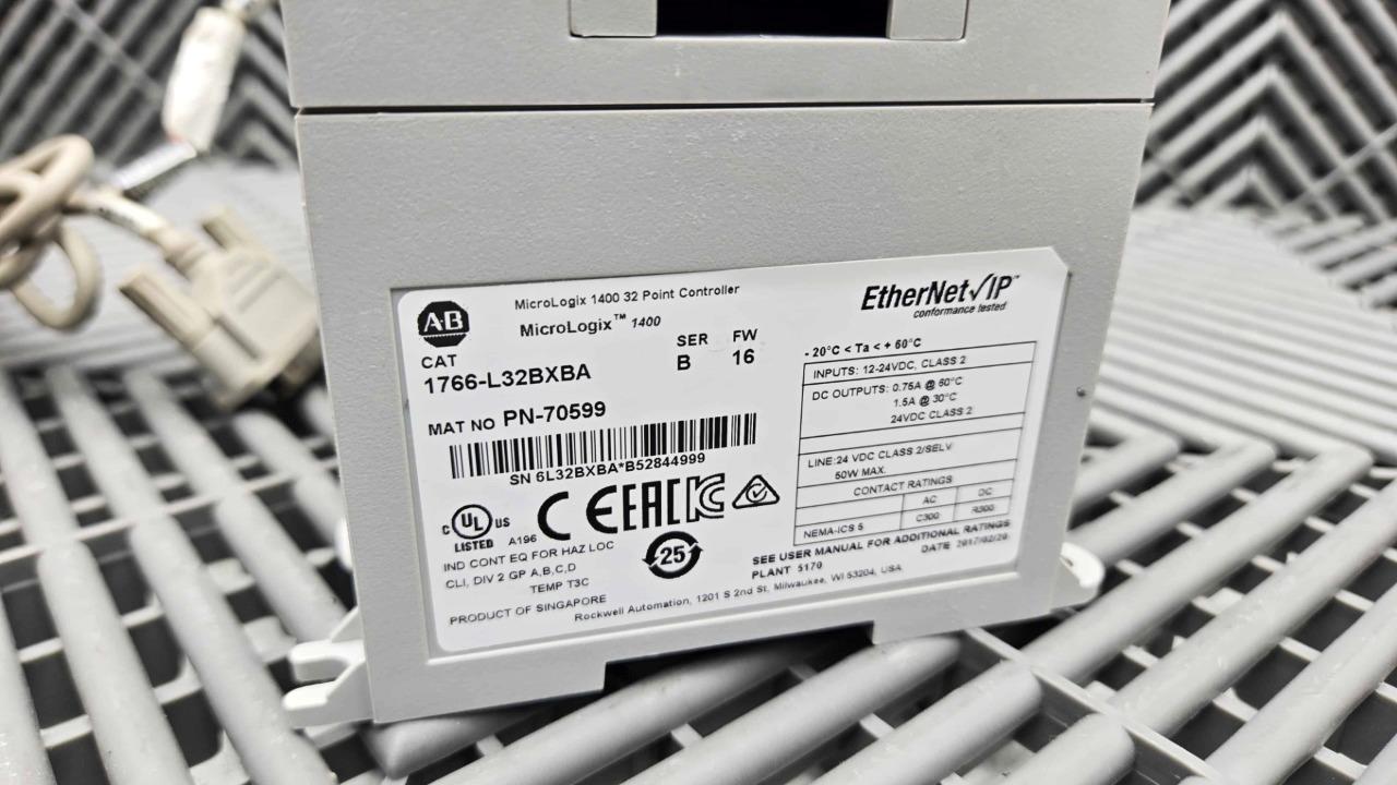 Here is an Allen-Bradley 1766-L32BXBA Ser B Processor Unit Micrologix 1400 32 Point Controller. In very good condition with minimal exterior wear, pulled from working equipment. Home POLICIES CONTACT US ABOUT ME FEEDBACK view all items Menu Home POLICIES CONTACT US ABOUT ME FEEDBACK view all items Categories Ball Screws / Shaft Couplings Cable Chains Cables for Automation Cameras for Automation Contactors/Relays Control Systems and PLCs Heating/Cooling for Automation Hydraulics Gear Reducers / Gear Heads Lab/Analytical Equipment Lasers Linear Actuators Linear Guides Liquid Valves/Flow Controls Manufacturing / Metalworking Motors For Automation Optics Power Supplies/Circuit Breaker Pneumatic Actuators /Cylinders Pneumatic Valves Safety Hardware for Automation Sensors Servo Motors / Servo Drives Stepper Motors /Stepper Drives Switches For Automation Transformers Vaccum Equipment Wiring for Automation Allen-Bradley 1766-L32BXBA Ser B Processor Unit Micrologix 1400 Controller FW 16 Item Specifications