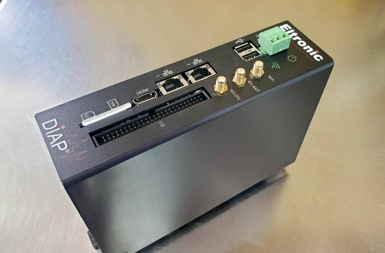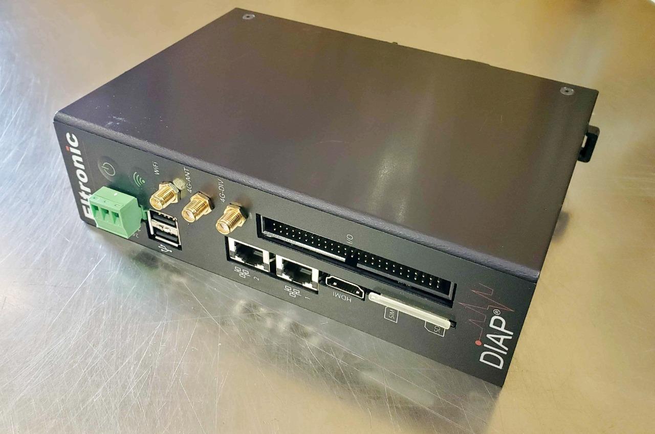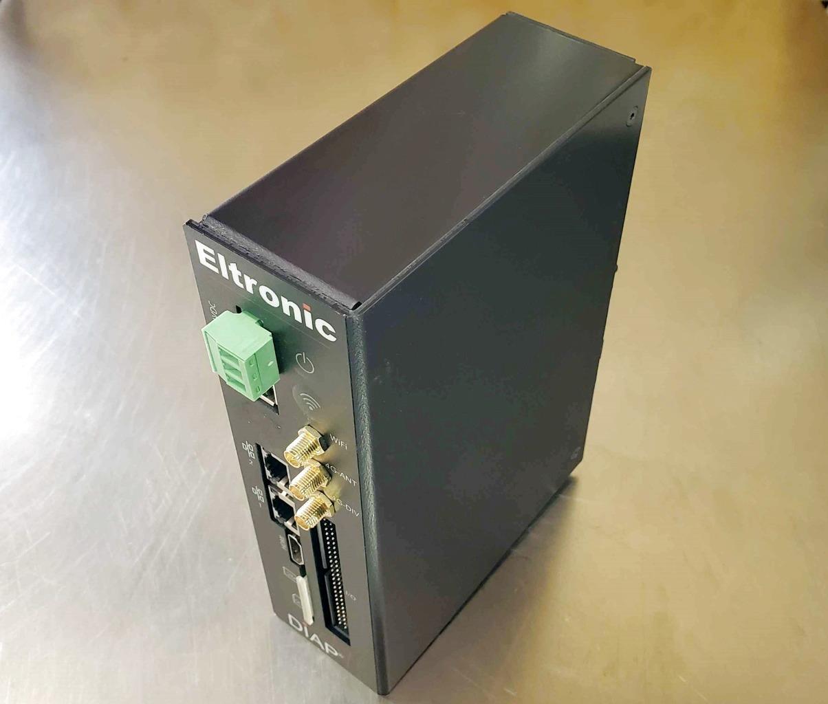 Here is a Data Intelligence Eltronic DIAP 50186 data gateway module for collecting and storing assembly line production data. In very good condition, pulled from a working robotic system that was never fully implemented.