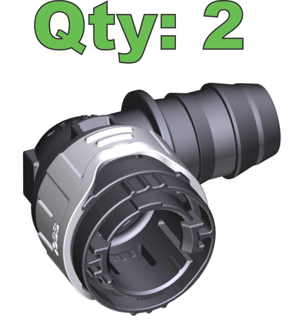 Here are some new Voss SV270 quick connect couplers. These are SV270 style, 90 degree fittings with a 5/8″ nominal hose barb. These are typically used for EV thermal management hoses. Each purchase is for two fittings. We have these available in bulk at discounted prices in other listings.Â