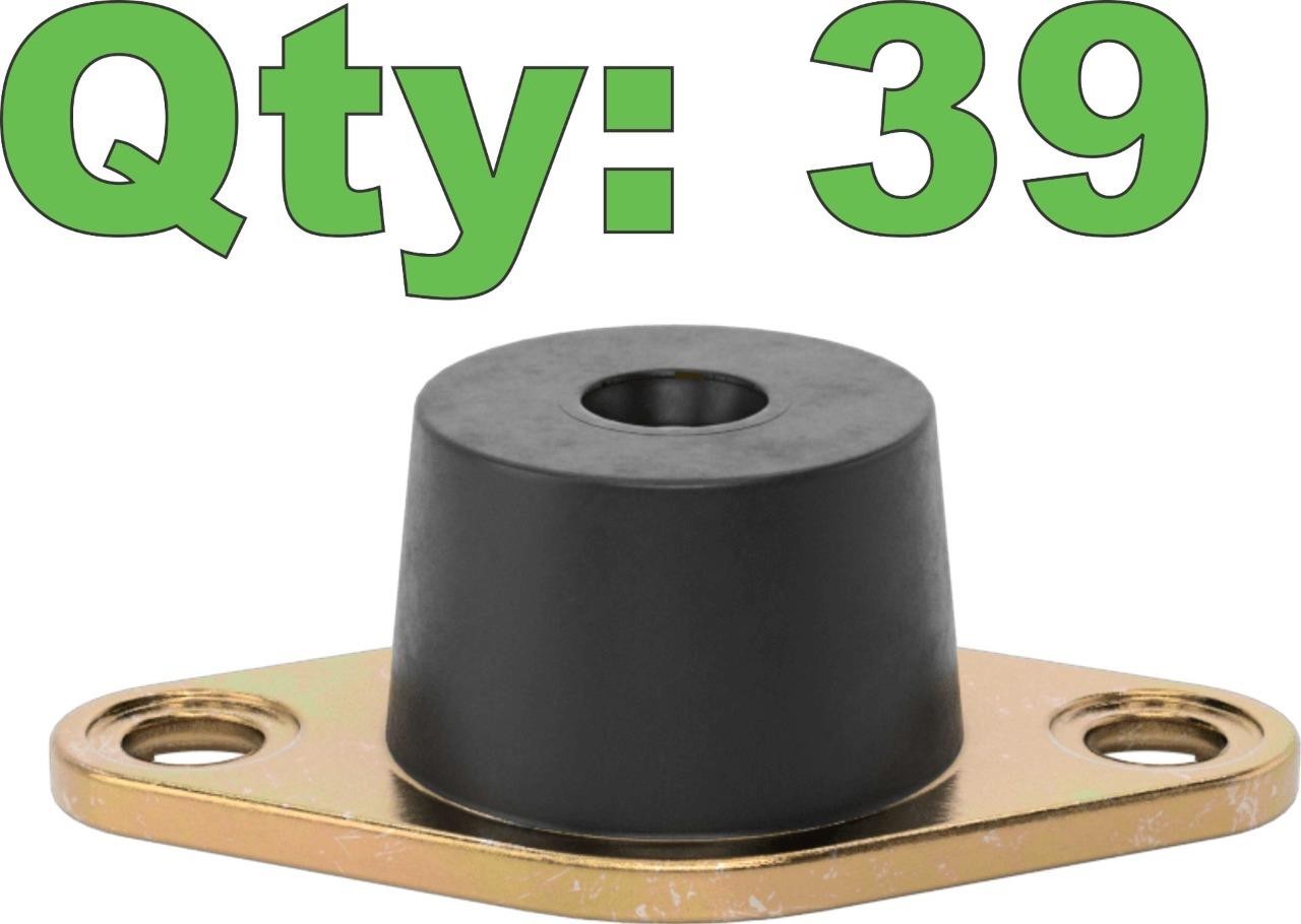 Here is a lot of 39 McMaster model 64875K424 vibration mounts. These have an M6 x 1mm threaded mounting hole up top and the side thru holes are 0.26″ in diameter. Please note, the photo from McMaster shows a plain steel base for some reason, but these are the same part numbers and are fully coated in rubber on the base as well as shown.Â