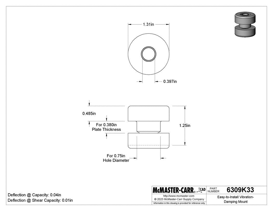 | McMaster Part Number | 6309K33Â |