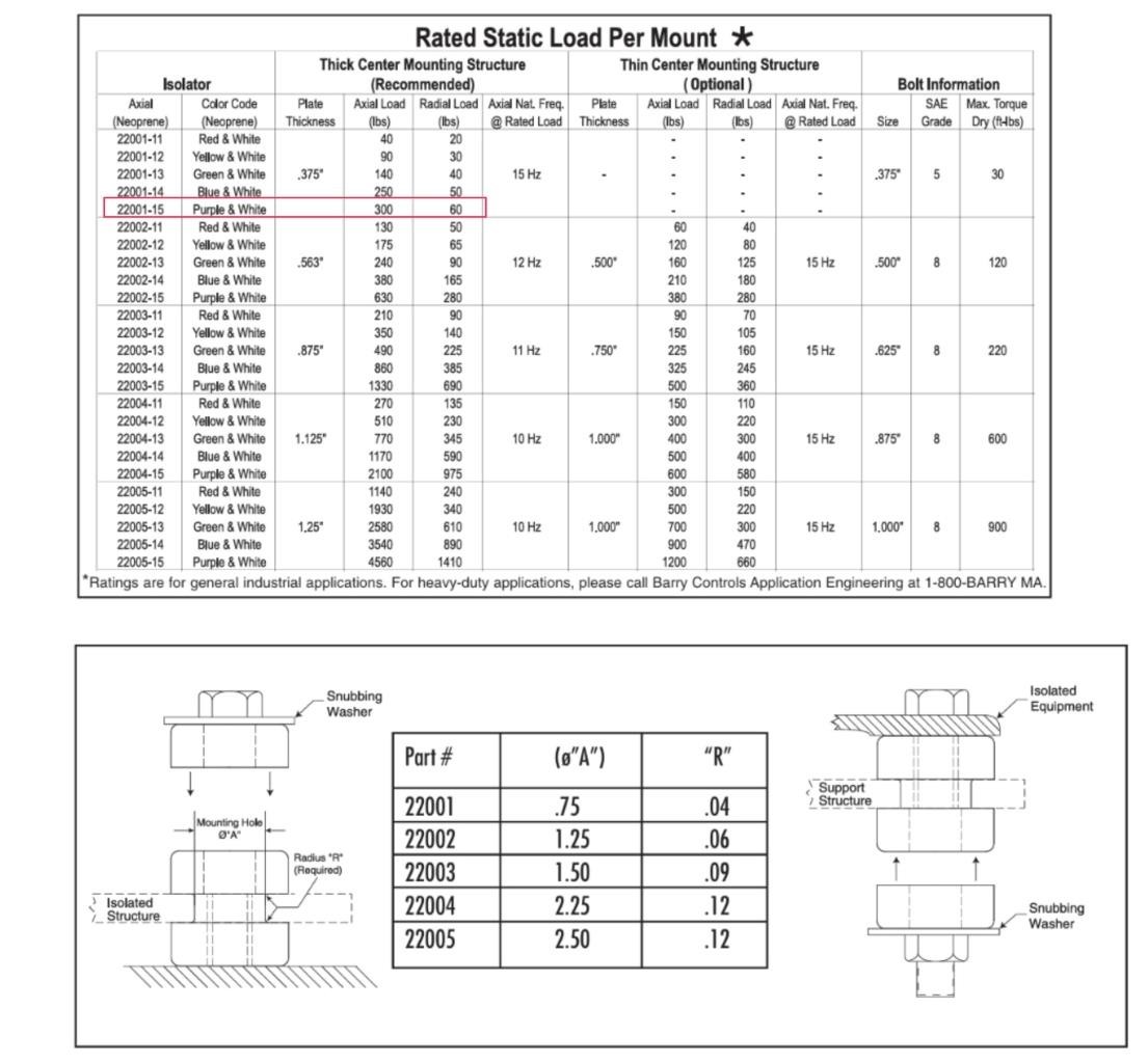 Here is a new lot of Barry Controls 22001-15 bonded tube mounts. These take a 3/8″ or M10 bolt and insert into a 0.75″ hole. Dimensional drawings are listed above. Each purchase is for four mounts.Â