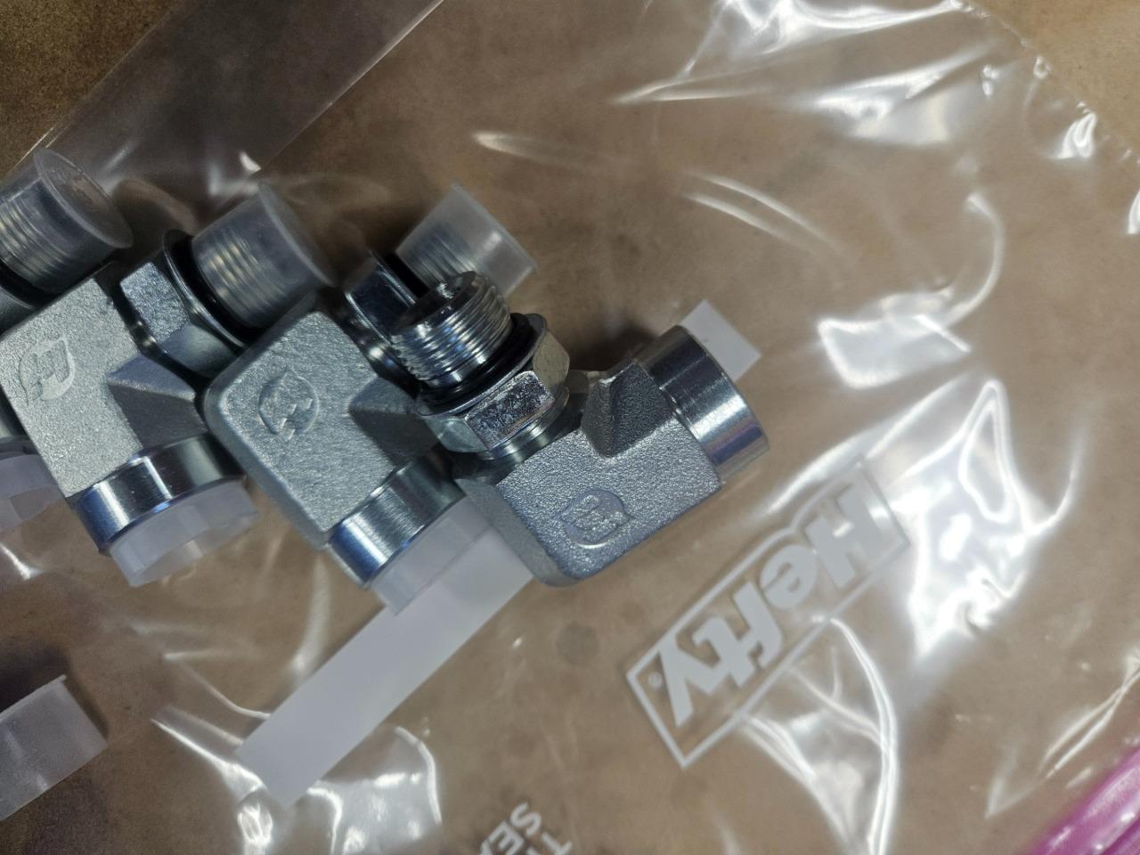 Here are some Brennan 6805-08-08-NWO-FG male ORB to 1/2″ female NPSM right angle elbow fittings. Further specs are listed above.Â