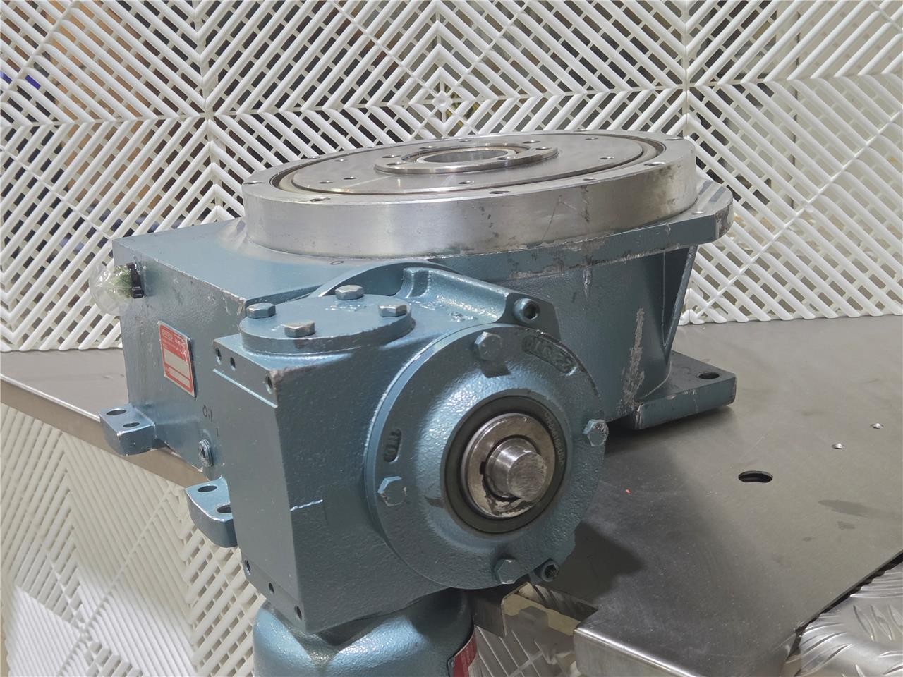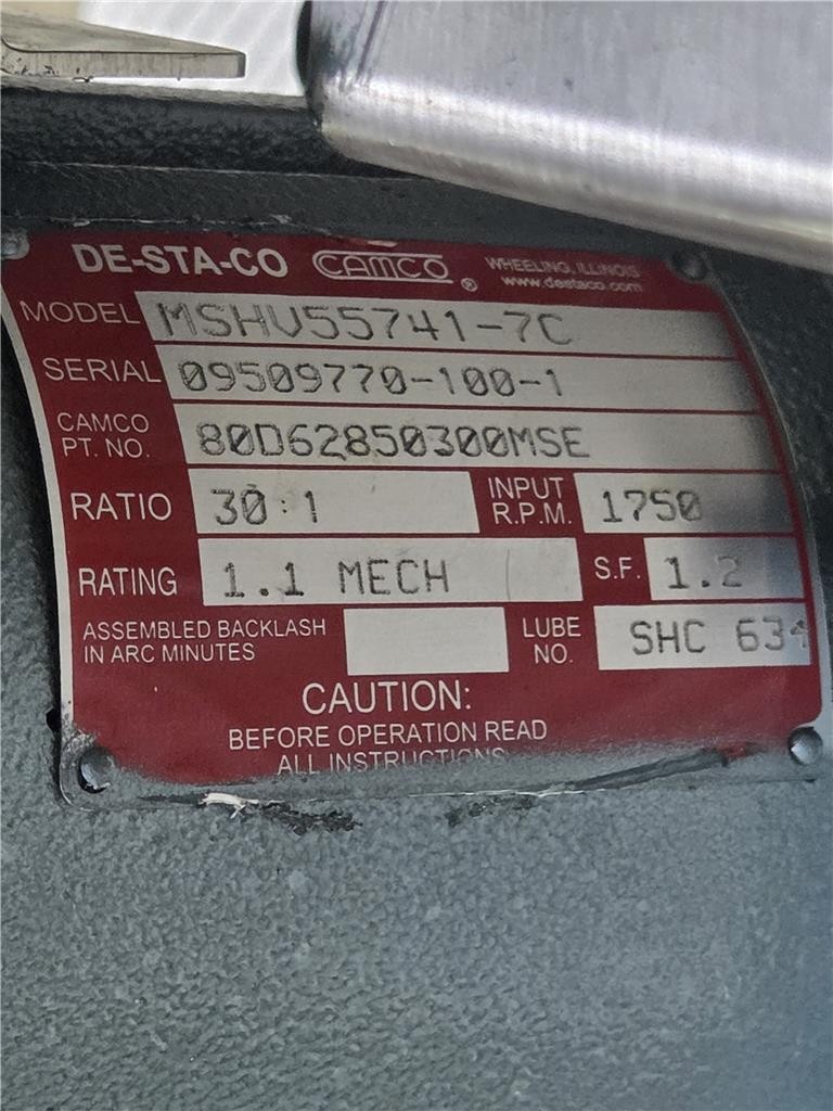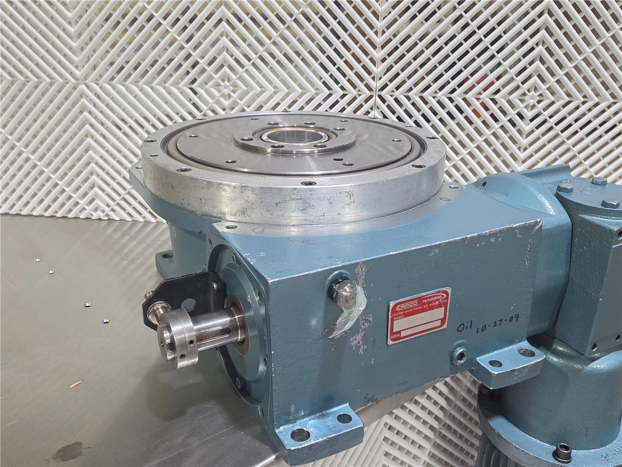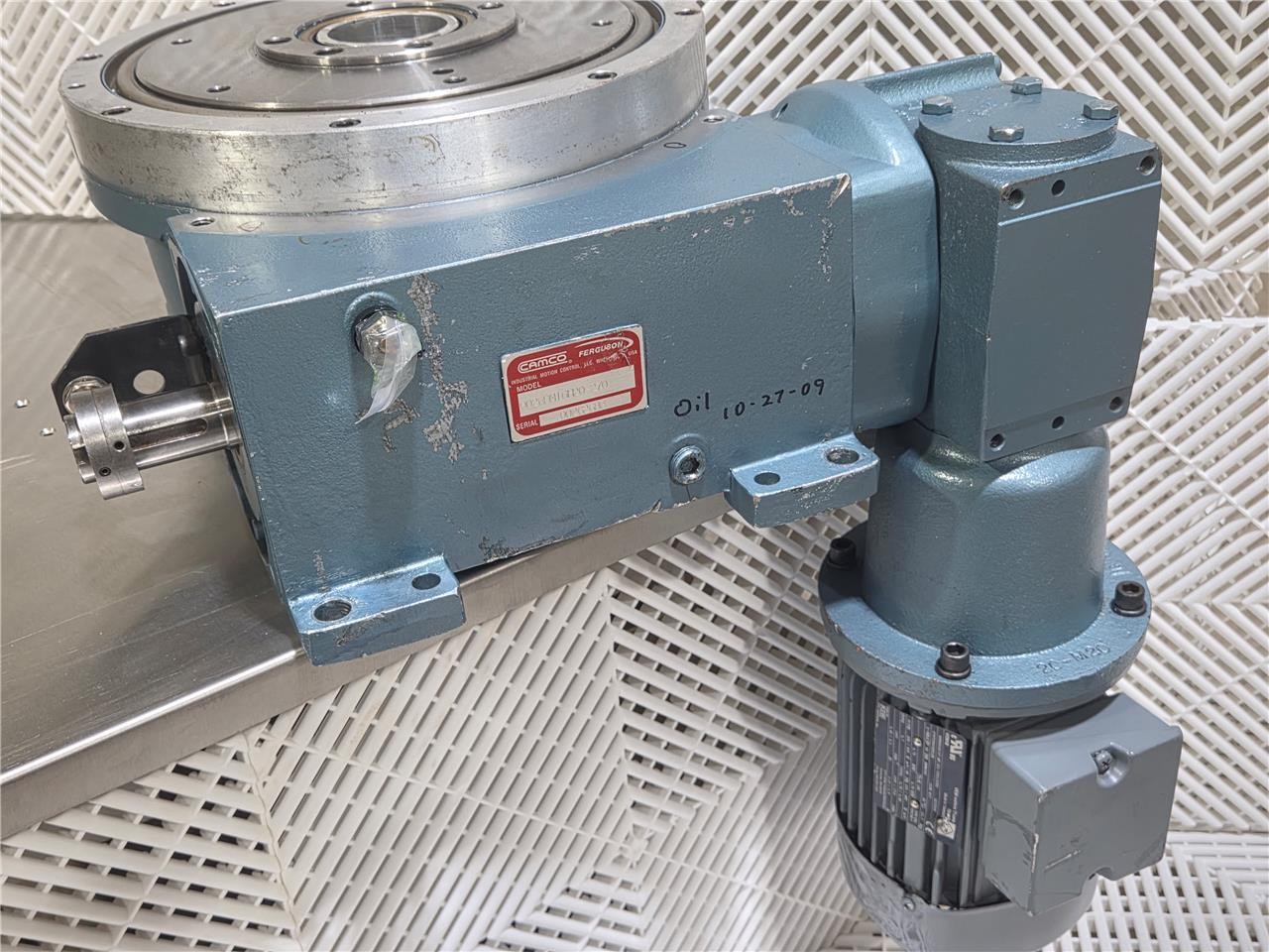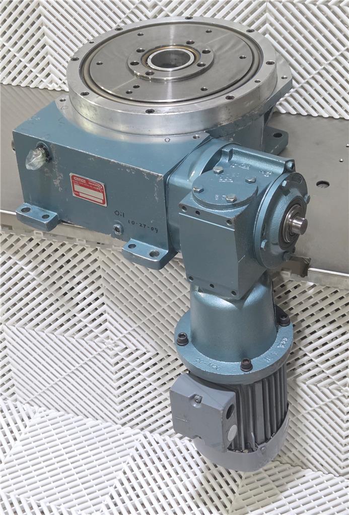 Here is a Camco rotary indexer. This is a 16-stop model with a 270-degree index period. Further specs listed above. Includes a 20:1 gear reducer and includes a VEM KPER80G4/07.MV.301-5300 motor. Unused spare, some visible exterior wear from storage.