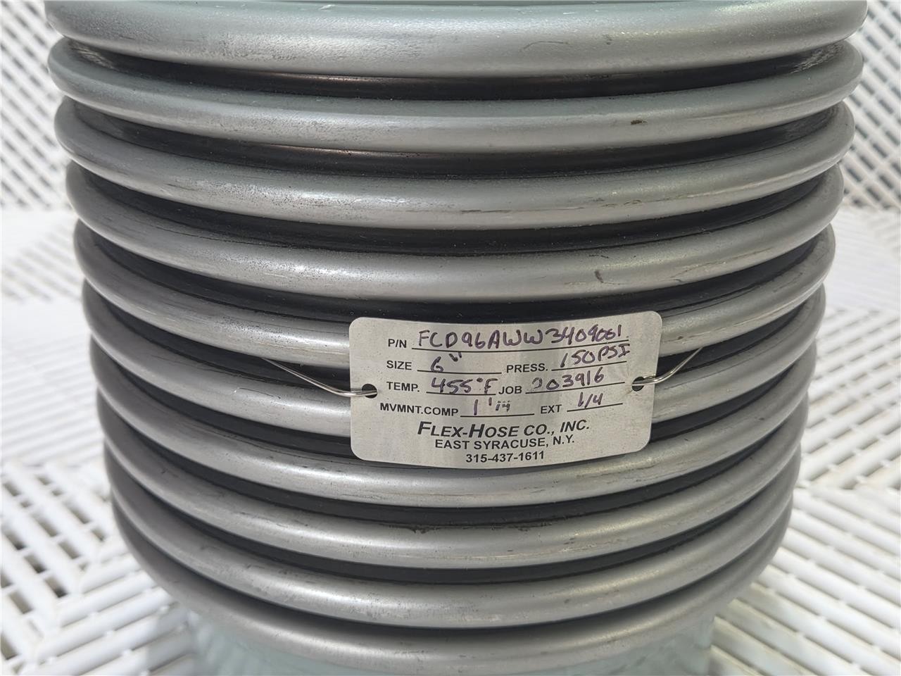 Here is a New Flex-Hose PumpFlex FCD96AWW3409001 Metal Expansion Joint 6″, Weld-ends 150psi. These items are brand new. Some were opened for inspection and pictures.