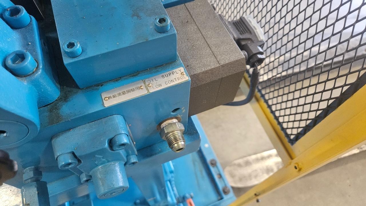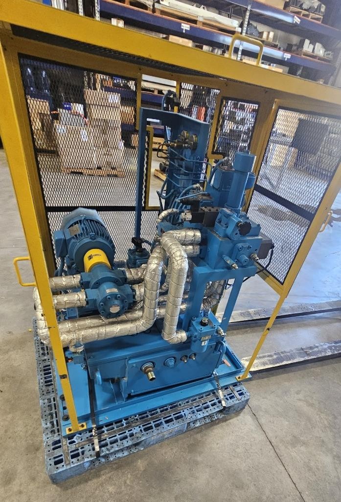 Here is Toyo-Oki hydraulic power unit for hot oil circulation. This has oil heaters and a heat exchanger designed for use with cooling water to maintain consistent oil temperature. Known specs are listed above. This was in working condition with when removed and is in clean shape as shown.Â