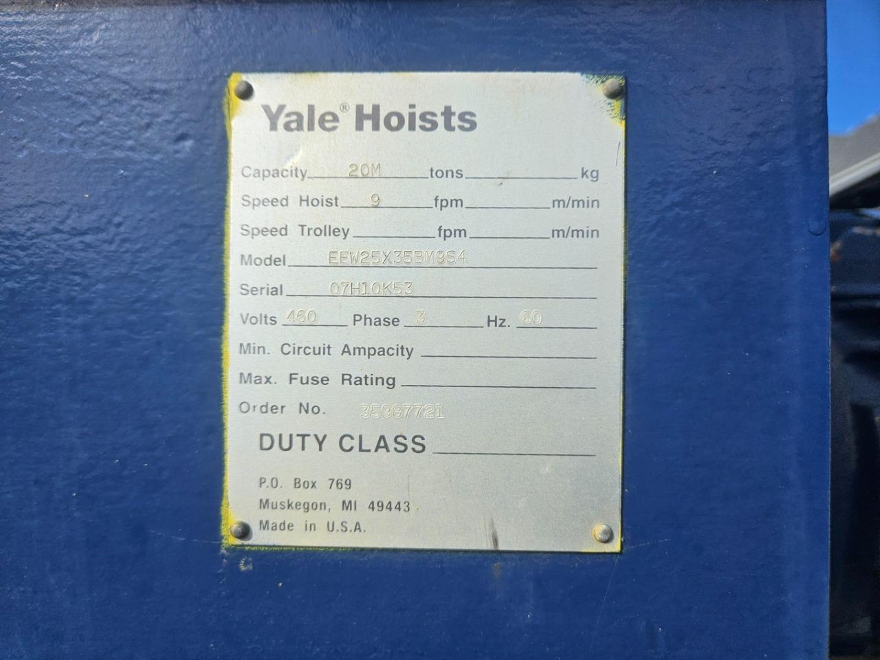 Yale EEW25X35BM9S4 Wire Rope Hoist 20 Ton, 35 Ft. Lift, 460V Three Phase – Used