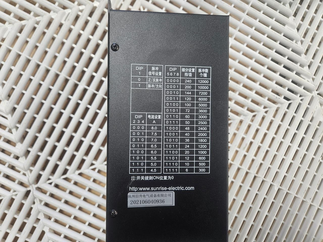 Here are some Sunrise Electric stepper motor drives. These are new drives out of box. They were mounted in enclosures for a manufacturing line that was never installed. These are three phase hybrid drives rated for up to 8A each. They accept a 220V AC input. Please note, as shown, the I/O on these are rated for 24V DC optocoupled instead of the standard 5V TTL inputs from the normal specs. Â