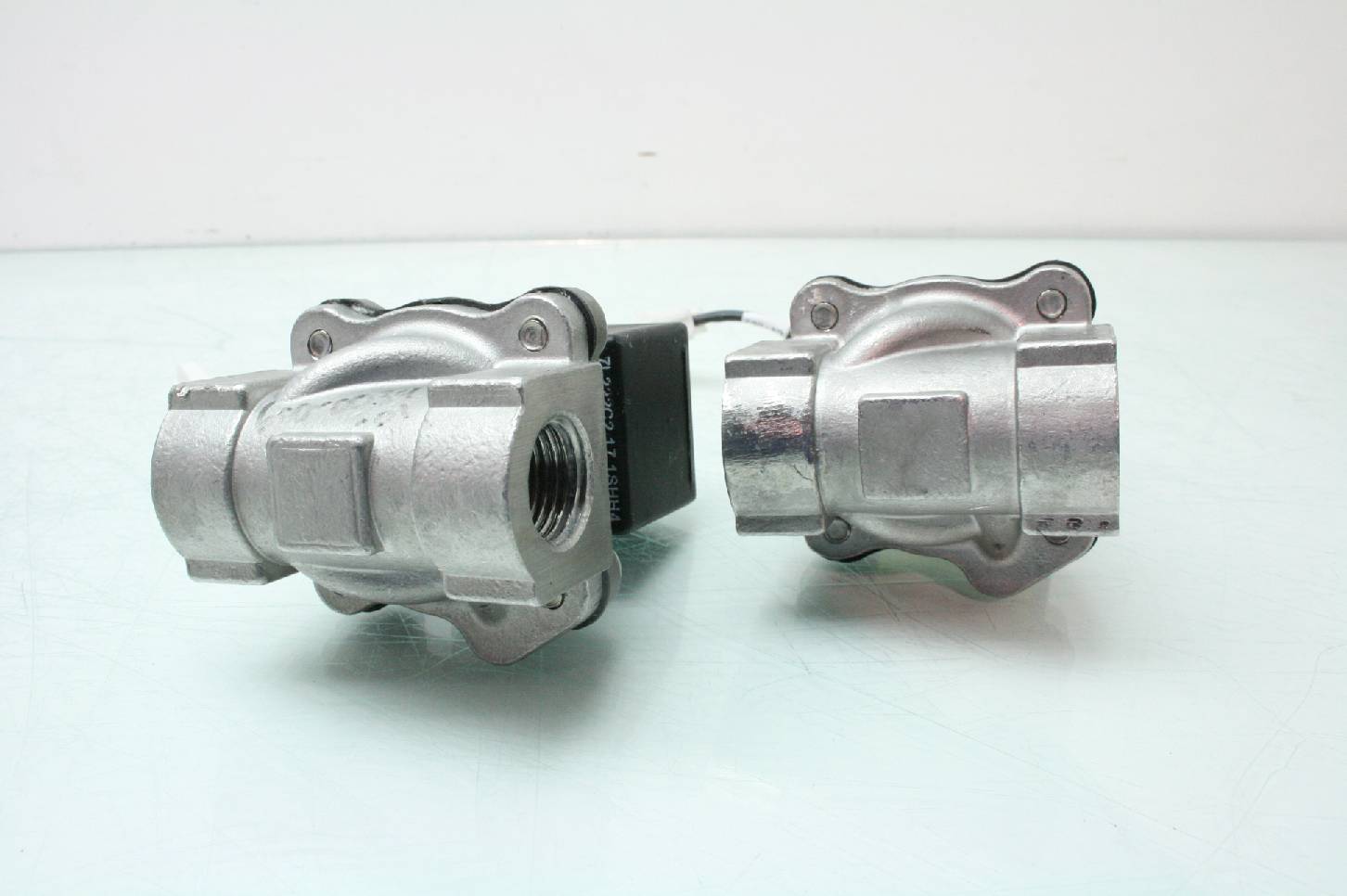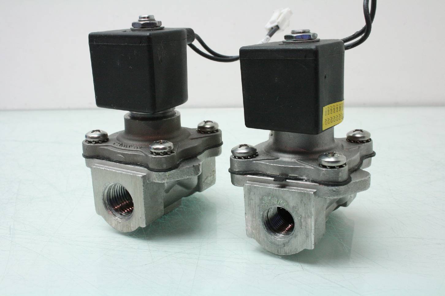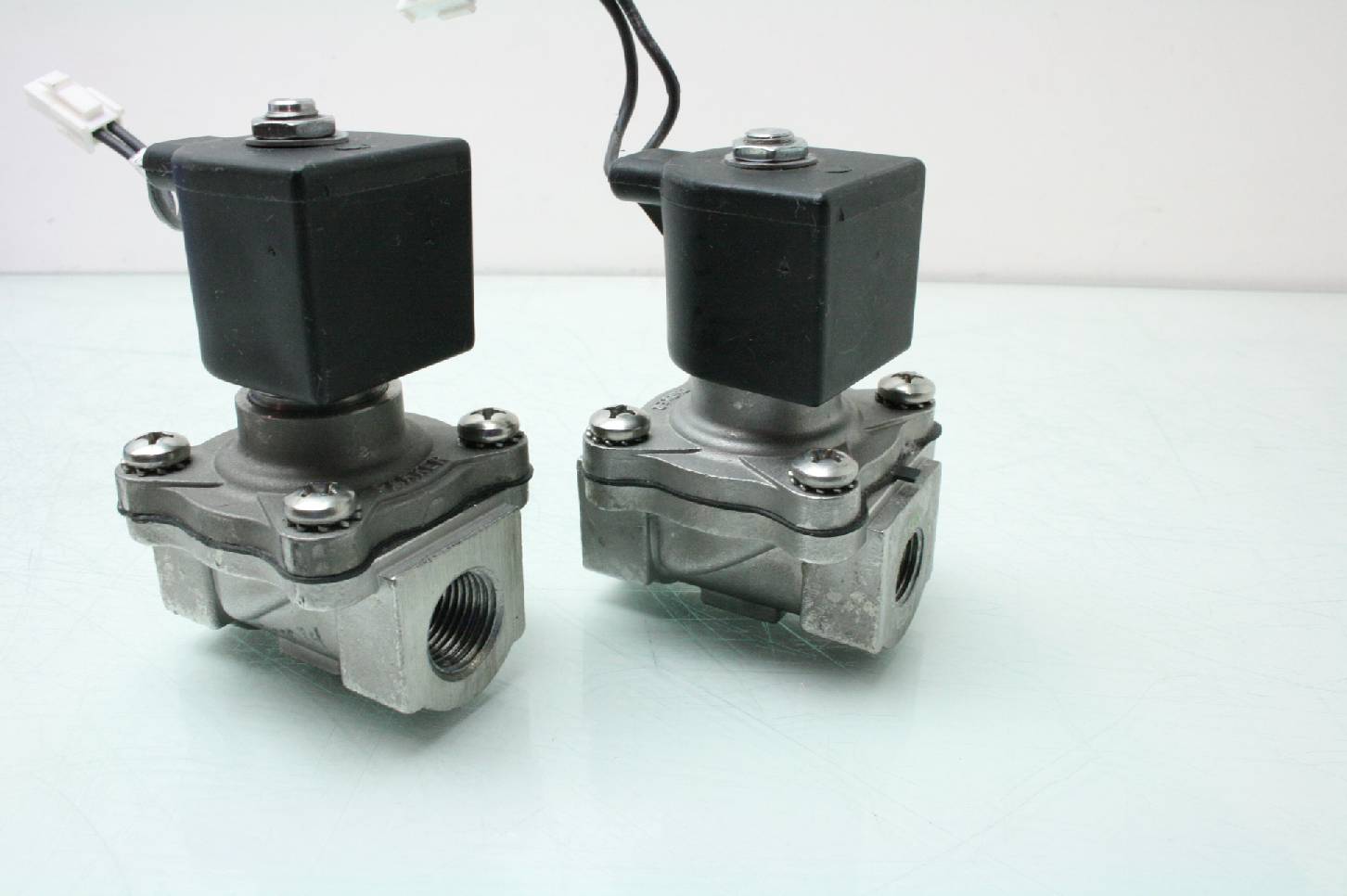 Here is a lot of 2 stainless steel parker 2 way solenoid valves. One valve has 1/2″ NPT ports and the other has 3/8″ NPT ports. Model numbers are listed above. These were pulled from late model automation equipment and are in excellent functional and cosmetic shape. These come with a 30 day right of return.