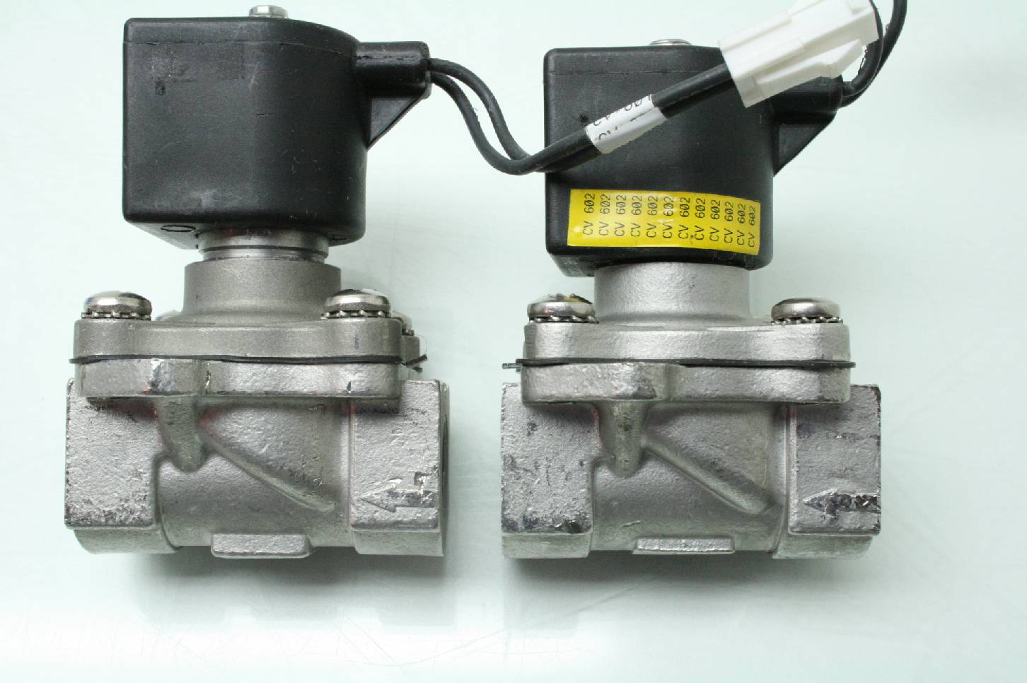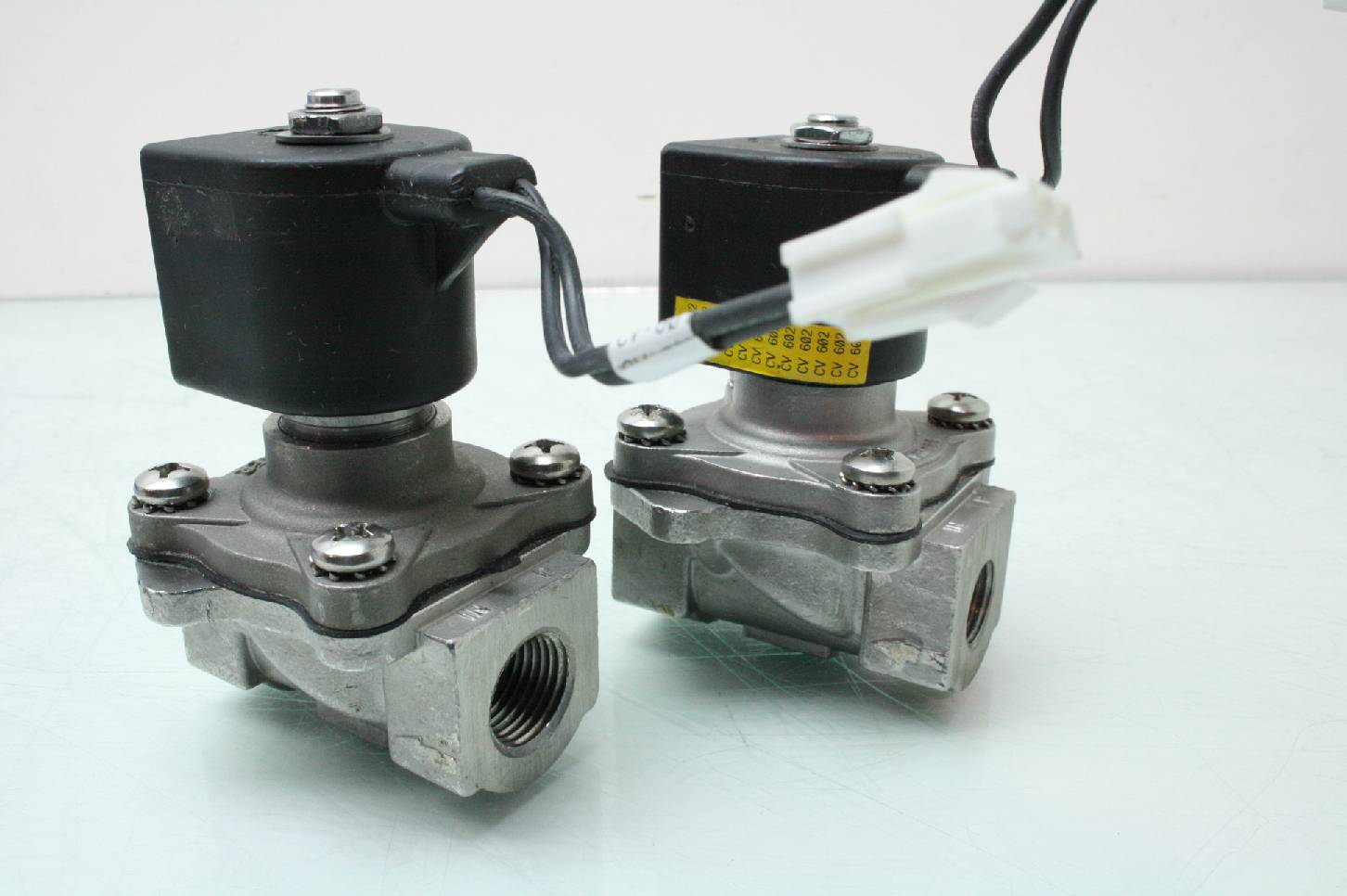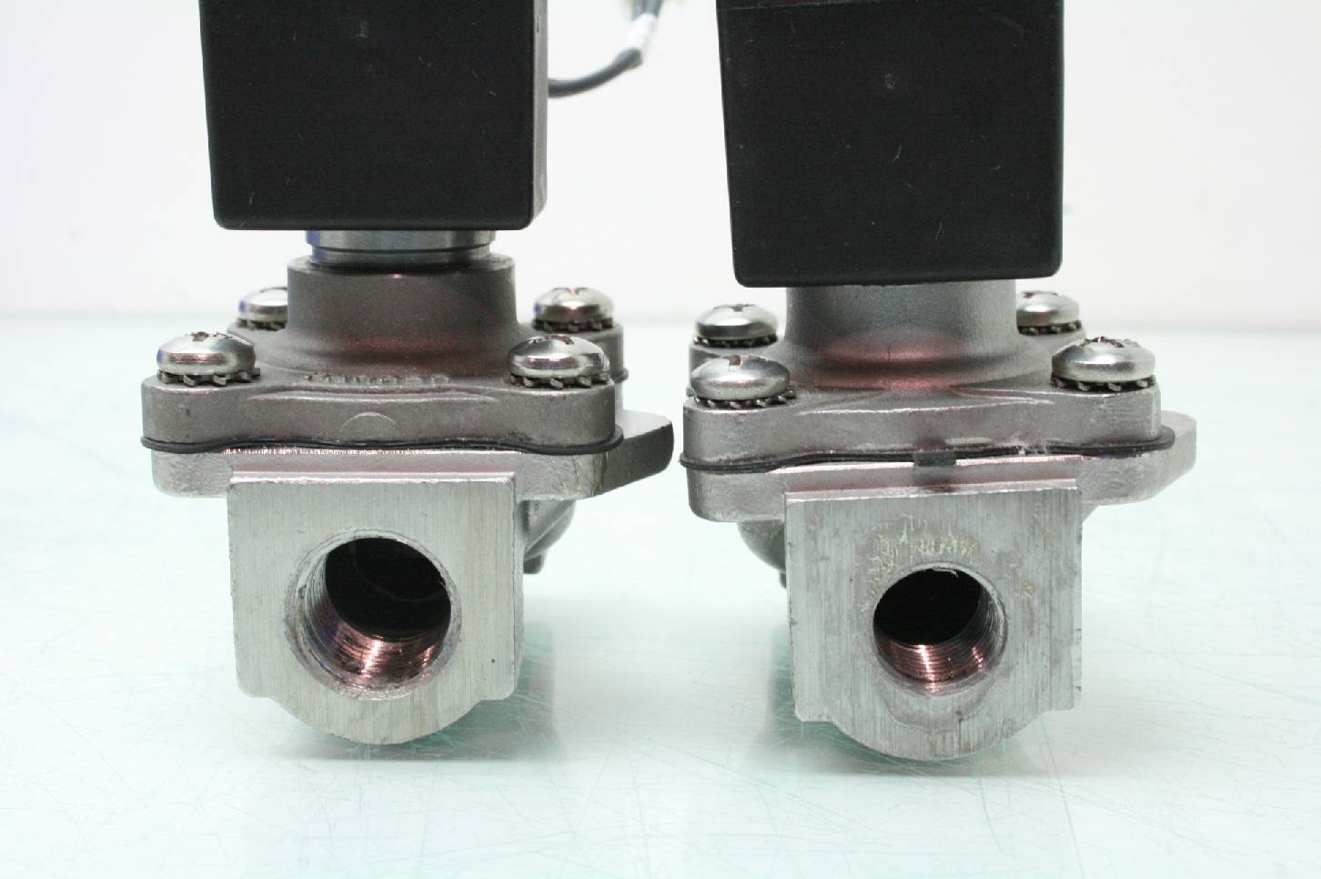 Here is a lot of 2 stainless steel parker 2 way solenoid valves. One valve has 1/2″ NPT ports and the other has 3/8″ NPT ports. Model numbers are listed above. These were pulled from late model automation equipment and are in excellent functional and cosmetic shape. These come with a 30 day right of return.