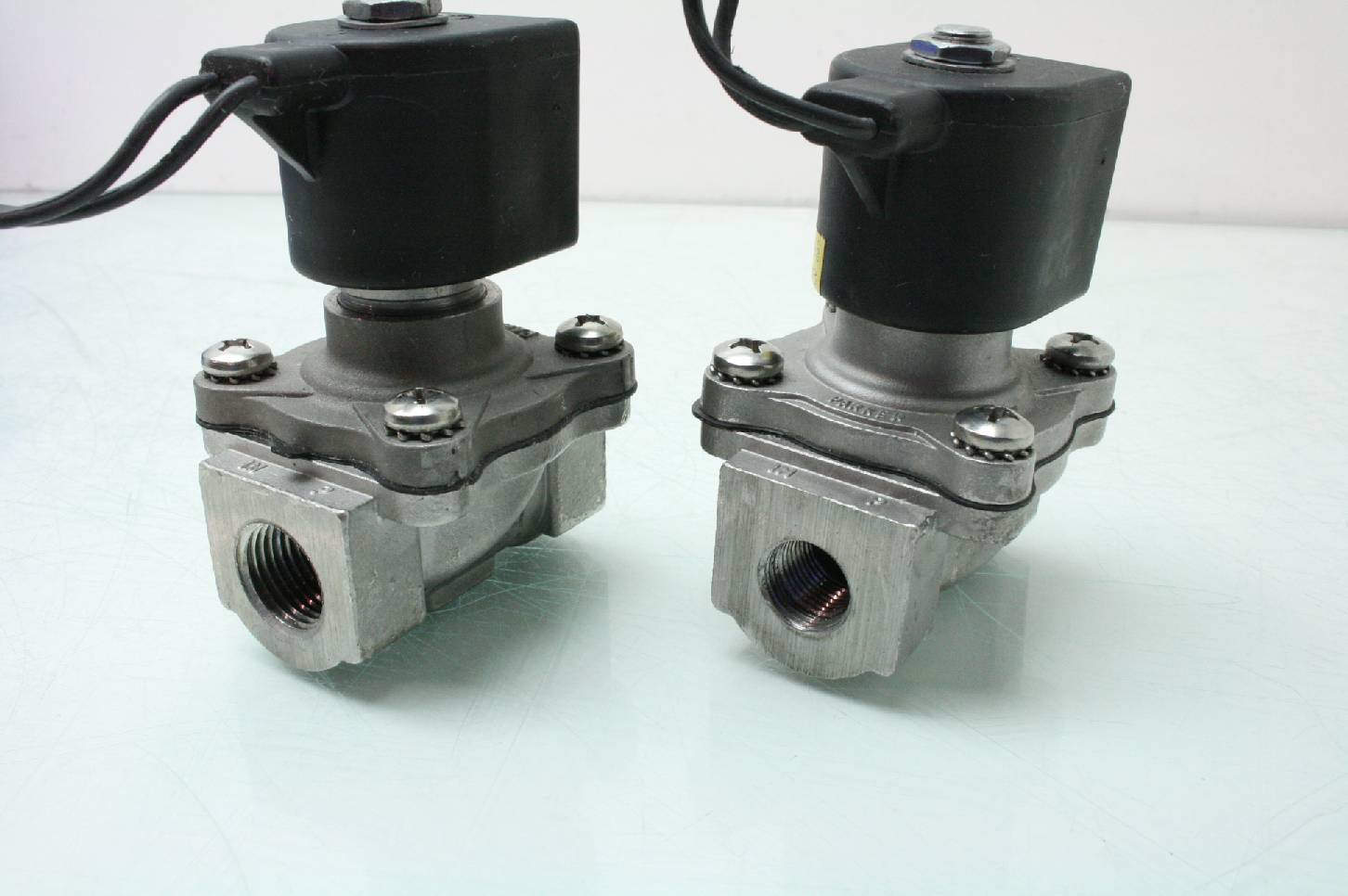 2 Parker Stainless 72228RN5VV00 / 72218RN3TV00 Solenoid Valves 24V Coils – Used