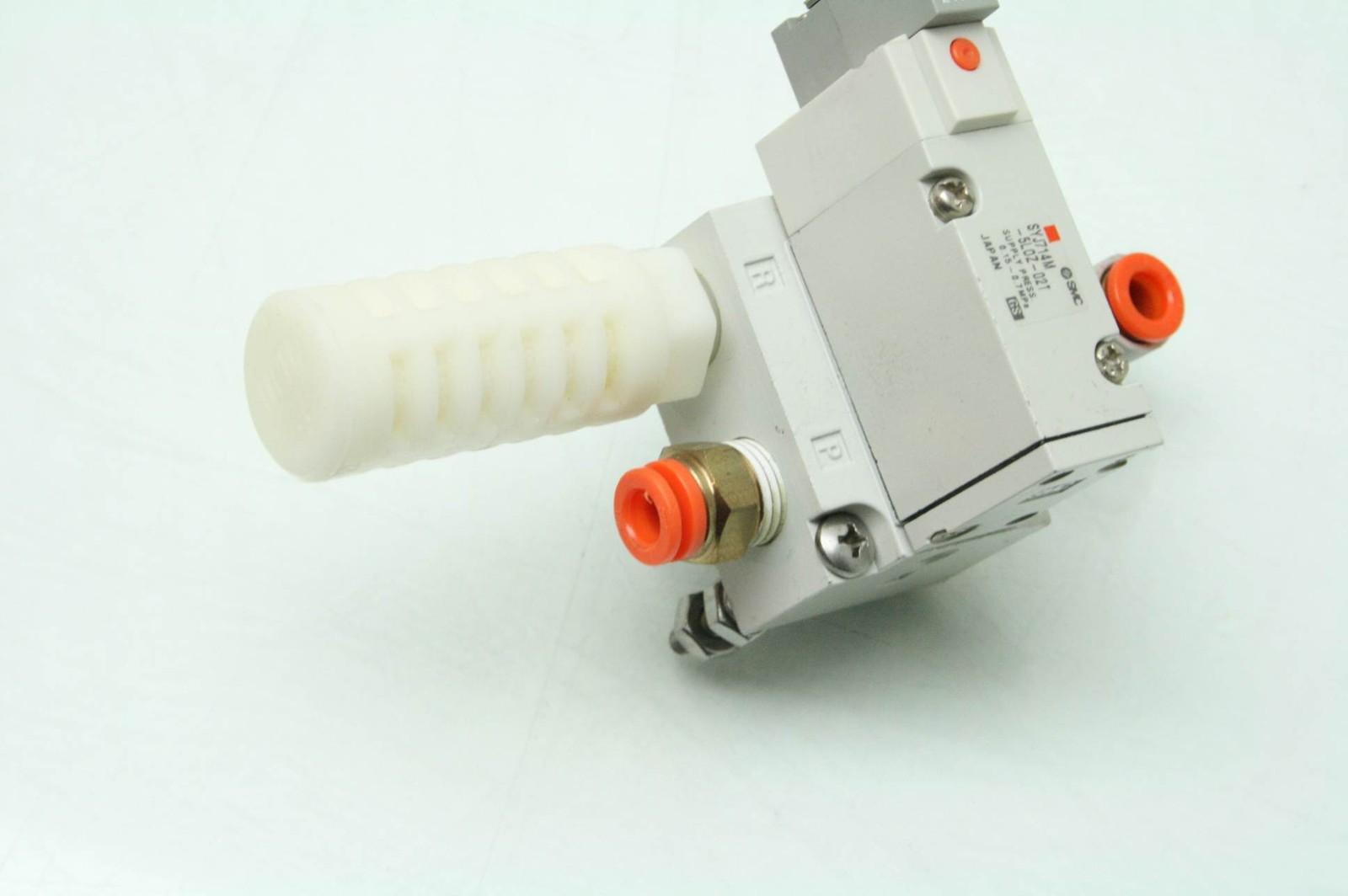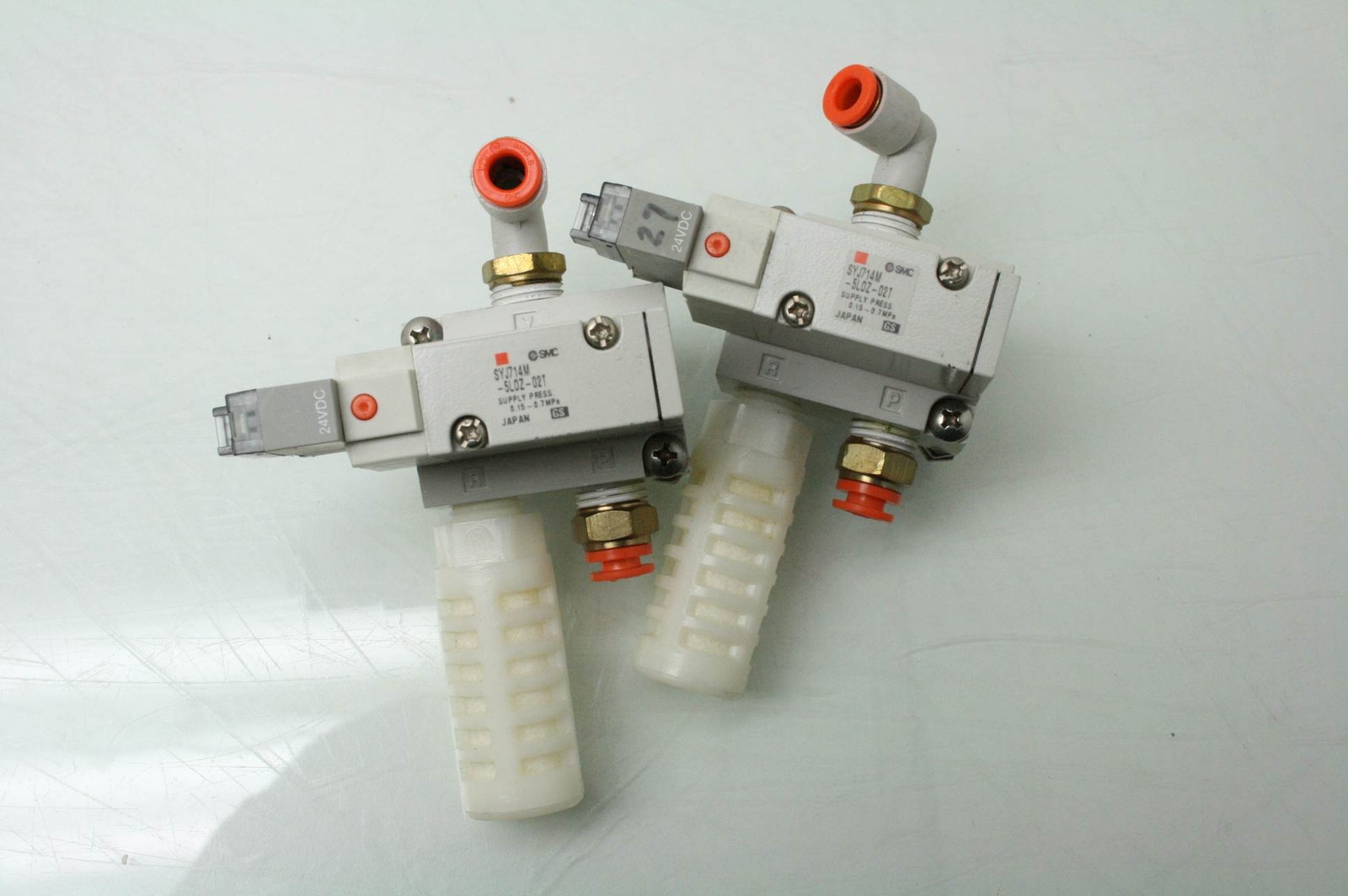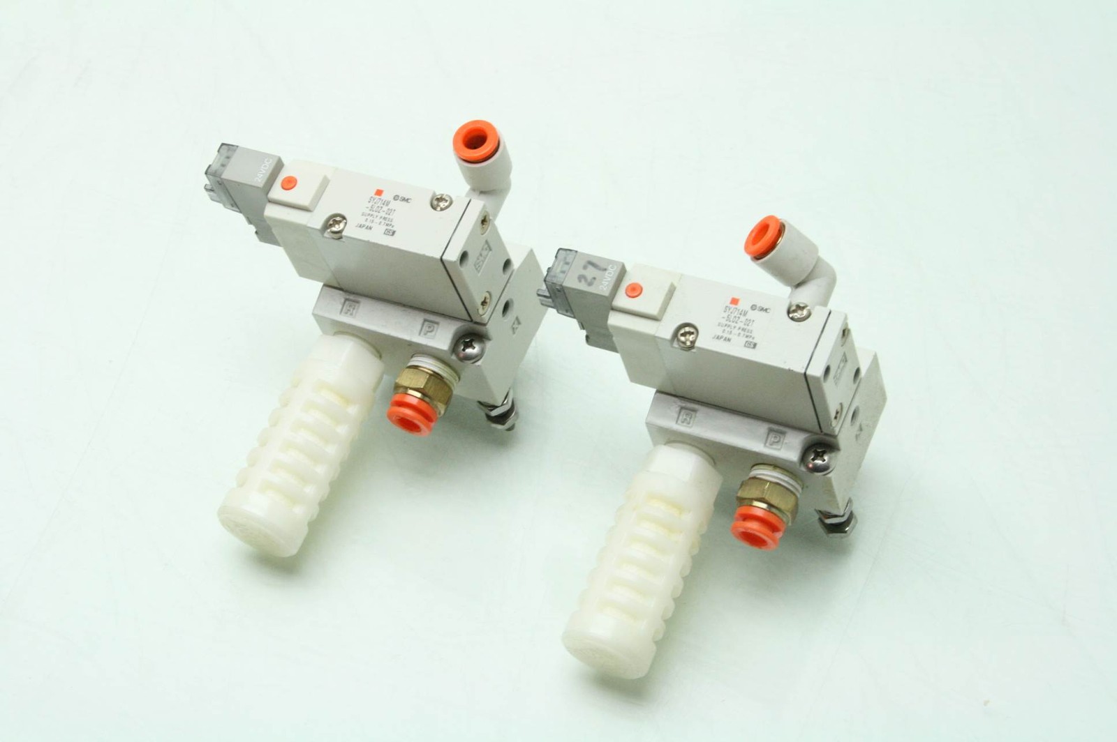 Here is a lot of 2 SMC manifold mounted solenoid valves. These have 24V coils and 1/4″ tube push to connect fittings. These were pulled from late model automation equipment and they are in excellent working and cosmetic condition. Both are included. For more technical information please follow this link: Here These are guaranteed not DOA with a 30 day right of return. LOCATION: ; C 1506 BIN: C-1506-E 15-2ListN 4/26 RL |
