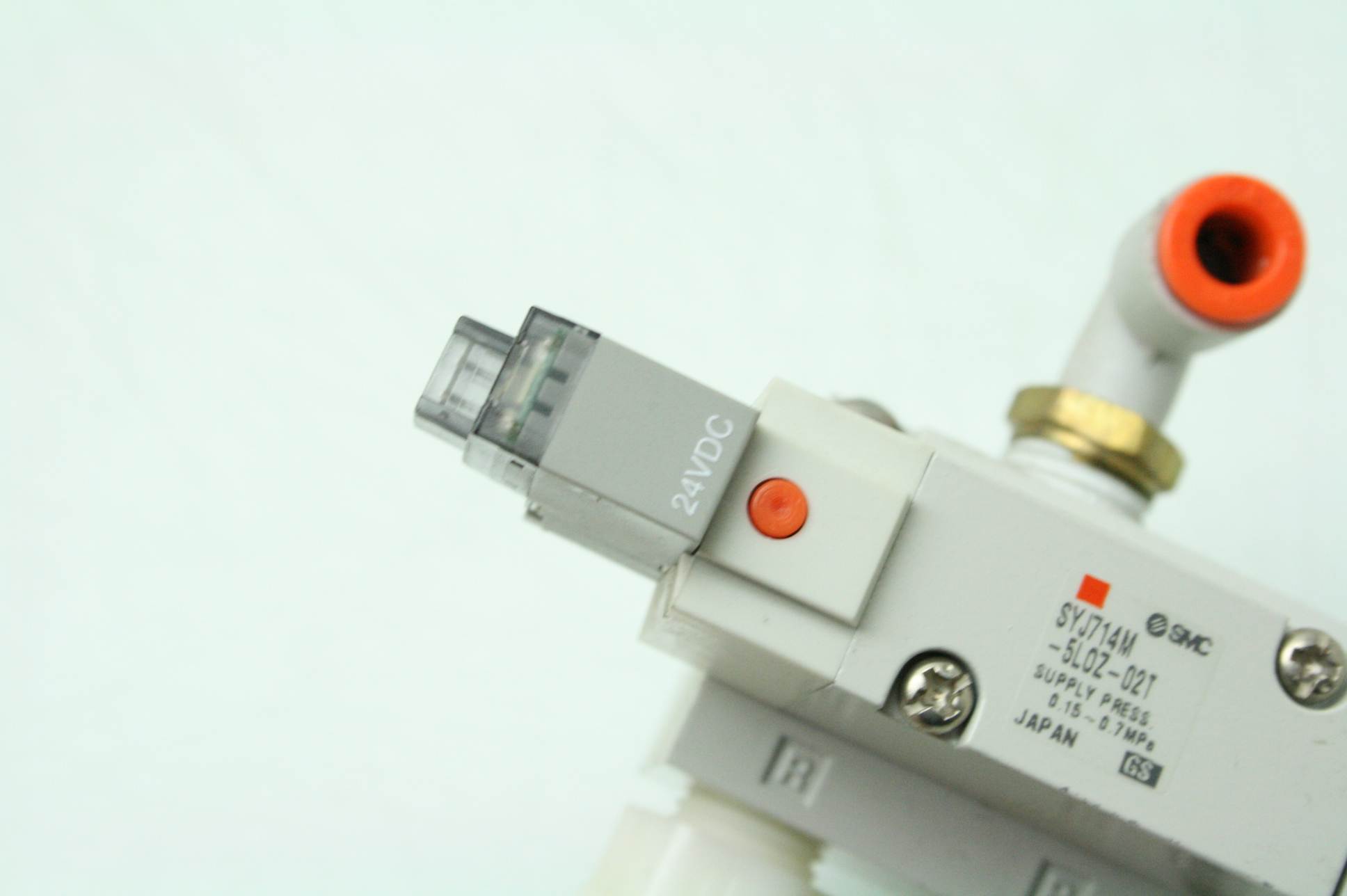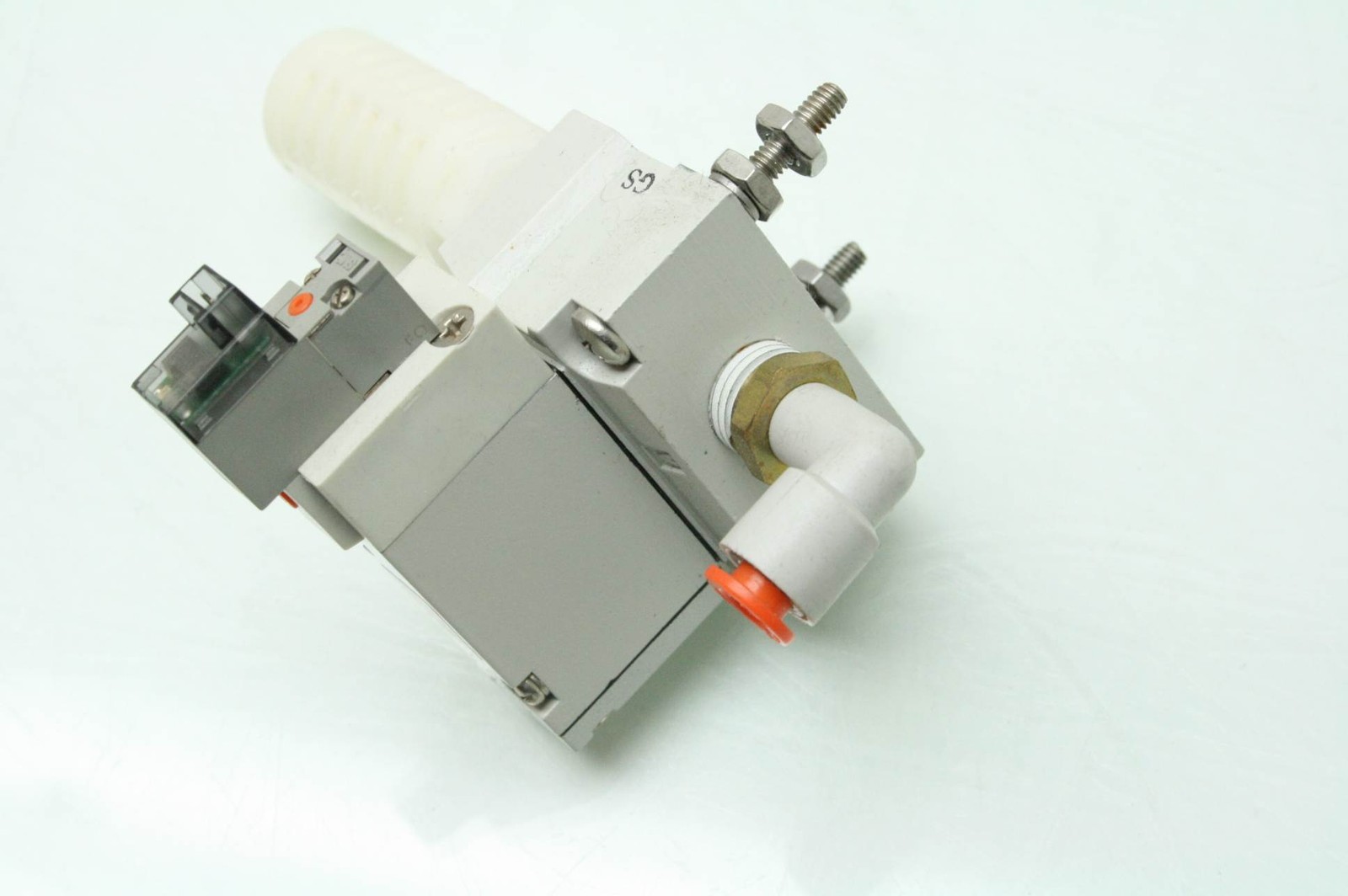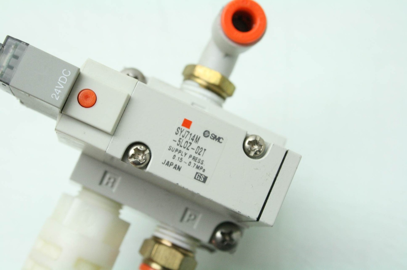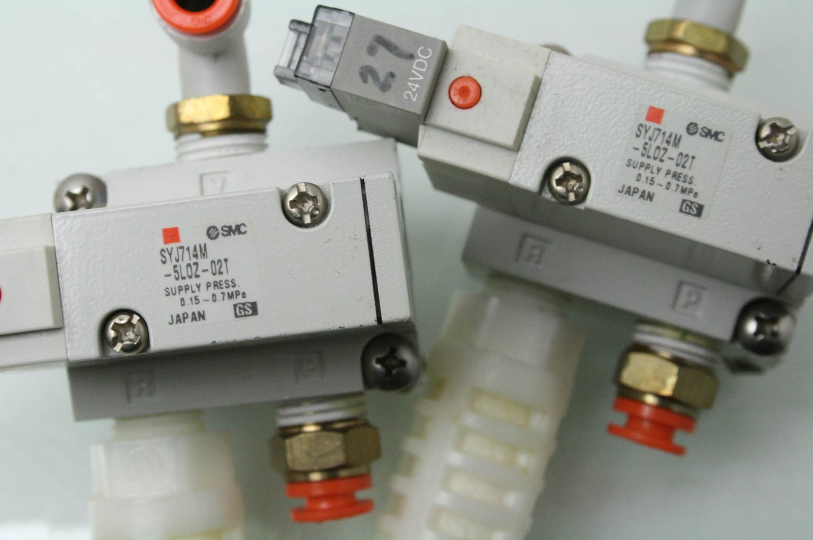 Here is a lot of 2 SMC manifold mounted solenoid valves. These have 24V coils and 1/4″ tube push to connect fittings. These were pulled from late model automation equipment and they are in excellent working and cosmetic condition. Both are included. For more technical information please follow this link: Here These are guaranteed not DOA with a 30 day right of return. LOCATION: ; C 1506 BIN: C-1506-E 15-2ListN 4/26 RL |