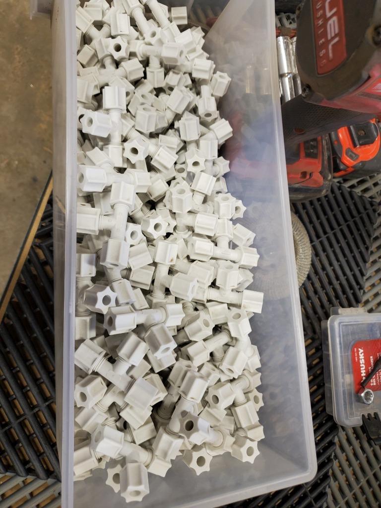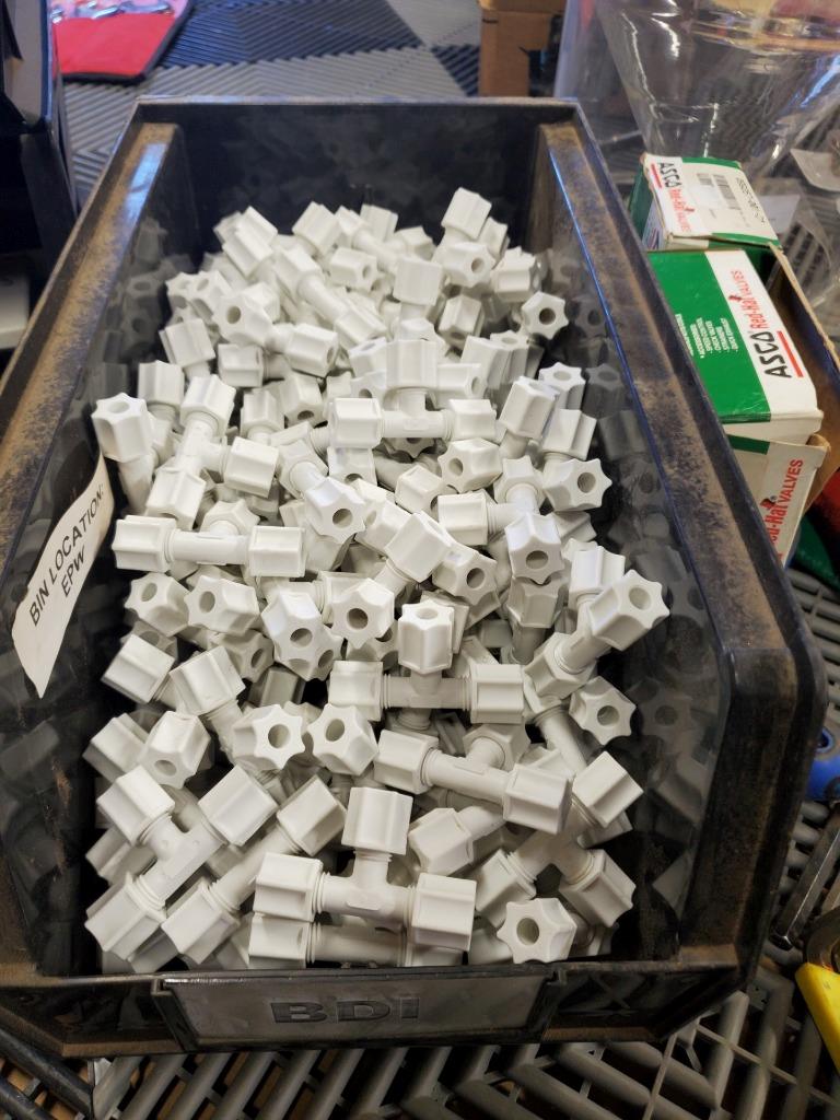 Here is a larger lot of Jaco Polypropylene compression tees. These have 1/4″ compression ferrule tube fittings on three sides. This lot includes 210 new fittings.
