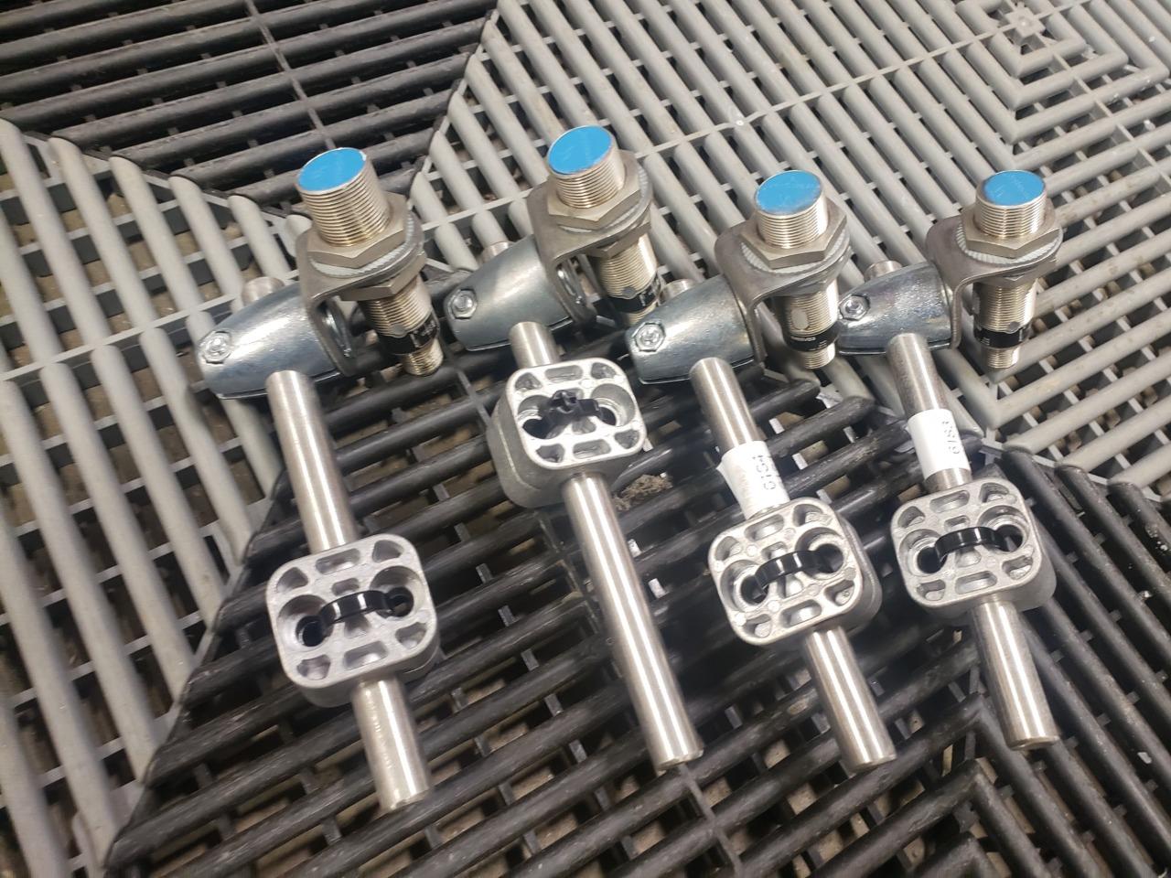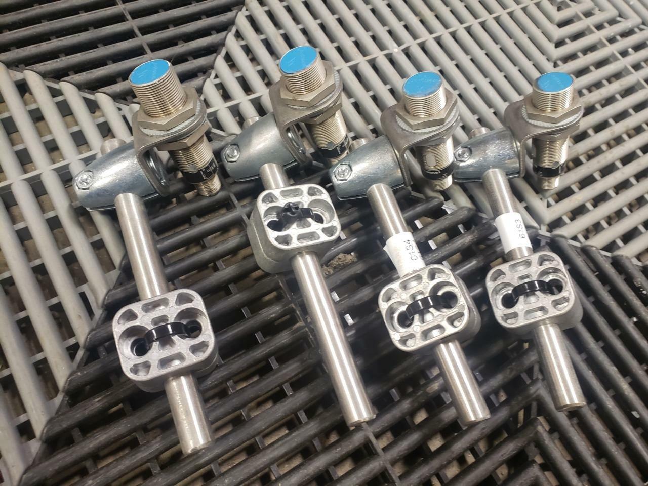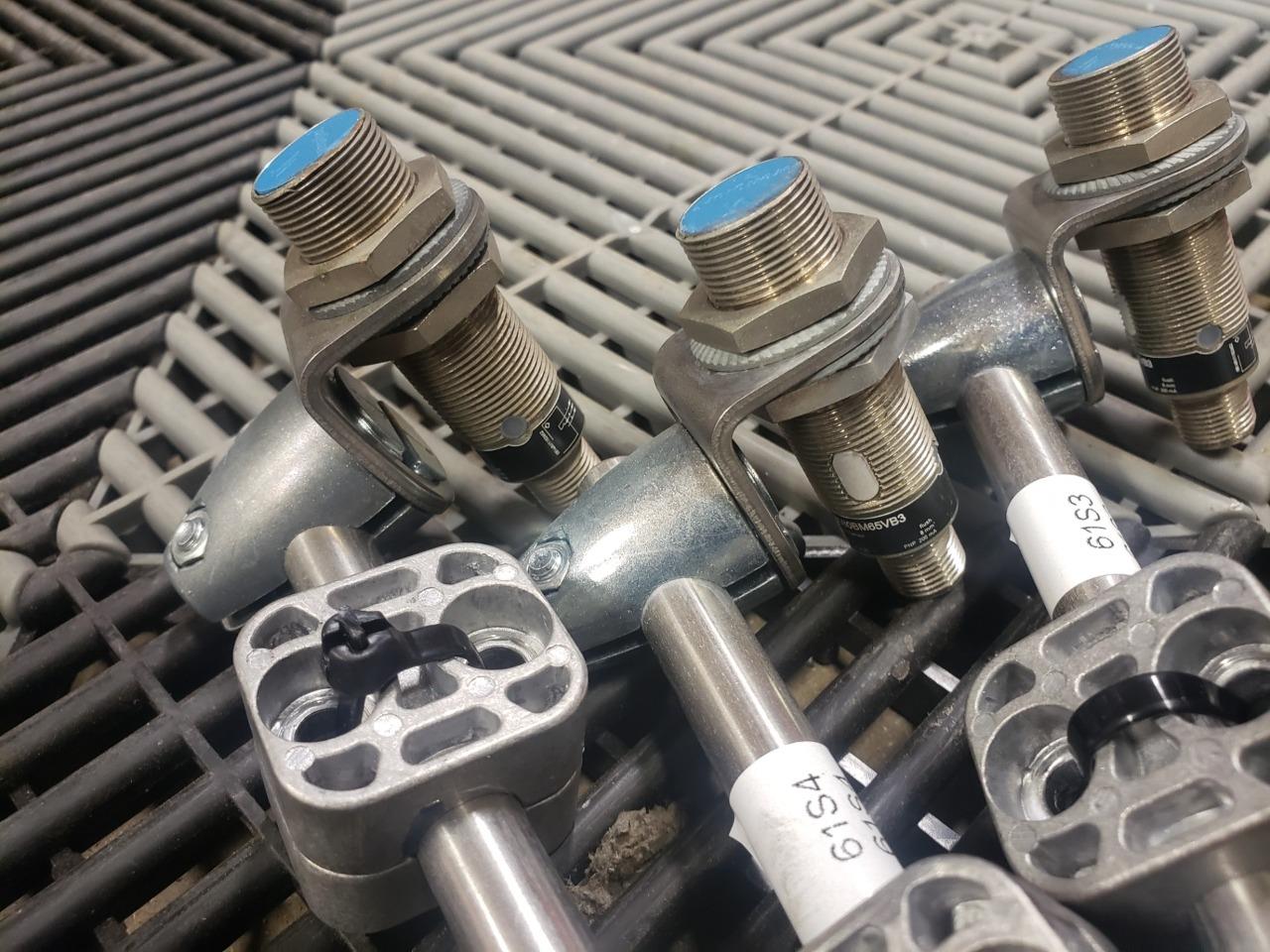 Here is a lot of four Wenglor M18 inductive proximity sensors complete with adjustable post mounts and mounting hardware. These are in excellent functional and cosmetic shape as shown. Full specs listed above. All four are included as shown. LOCATION: C1606 BIN: C-1606-J 10/20 ND 4/26 RL |