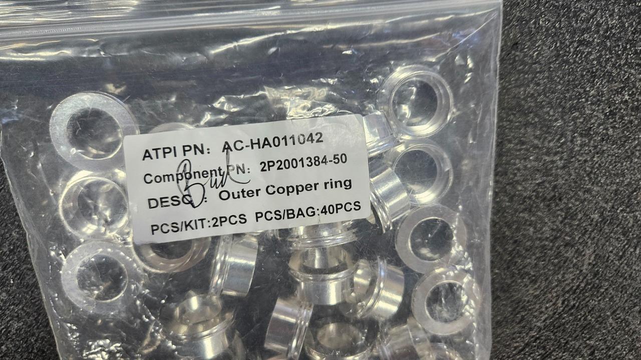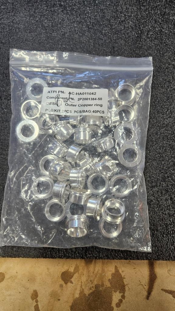Here is a new bag of Amphenol 2P2001384-50 outer copper rings for Amphenol (ATPI) Powerlok connector assemblies. This lot includes 40 rings new in a bag as shown.
