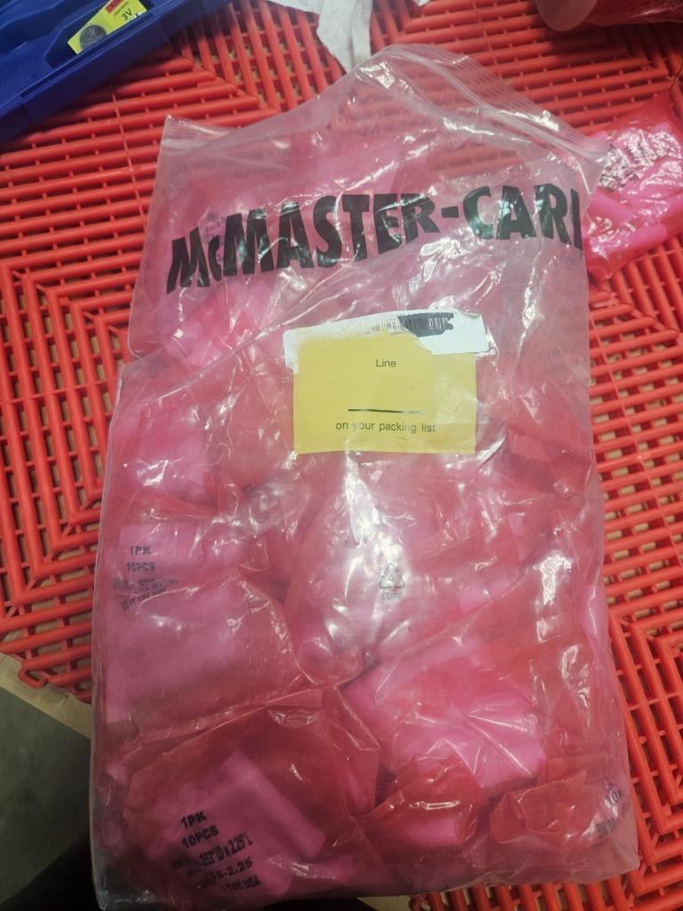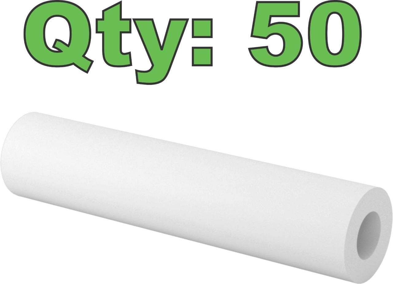 Here is a lot of 50 plastic unthreaded spacers. These are 1/4″ screw size, 1/2″ outer diameter and 2-1/4″ long. Each purchase is for 50 spacers (5 packs of 10). These are McMaster part number 94729A311.