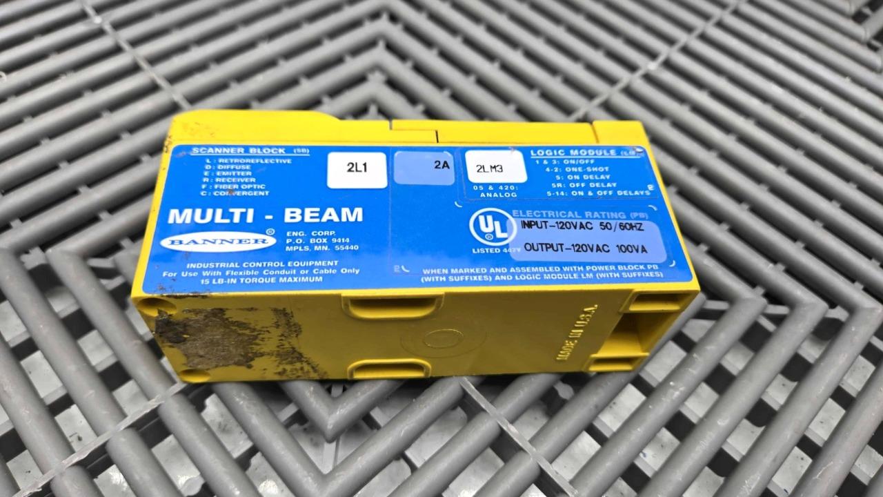Here is a BBanner Multi-Beam 2L1-2A-2LM3 Retroreflective Scanner Block Photoelectric Sensor. In good condition with minor exterior wear, pulled from working equipment. External markings present. LOCATION: A0206 04/25 AD 4/26 RL |