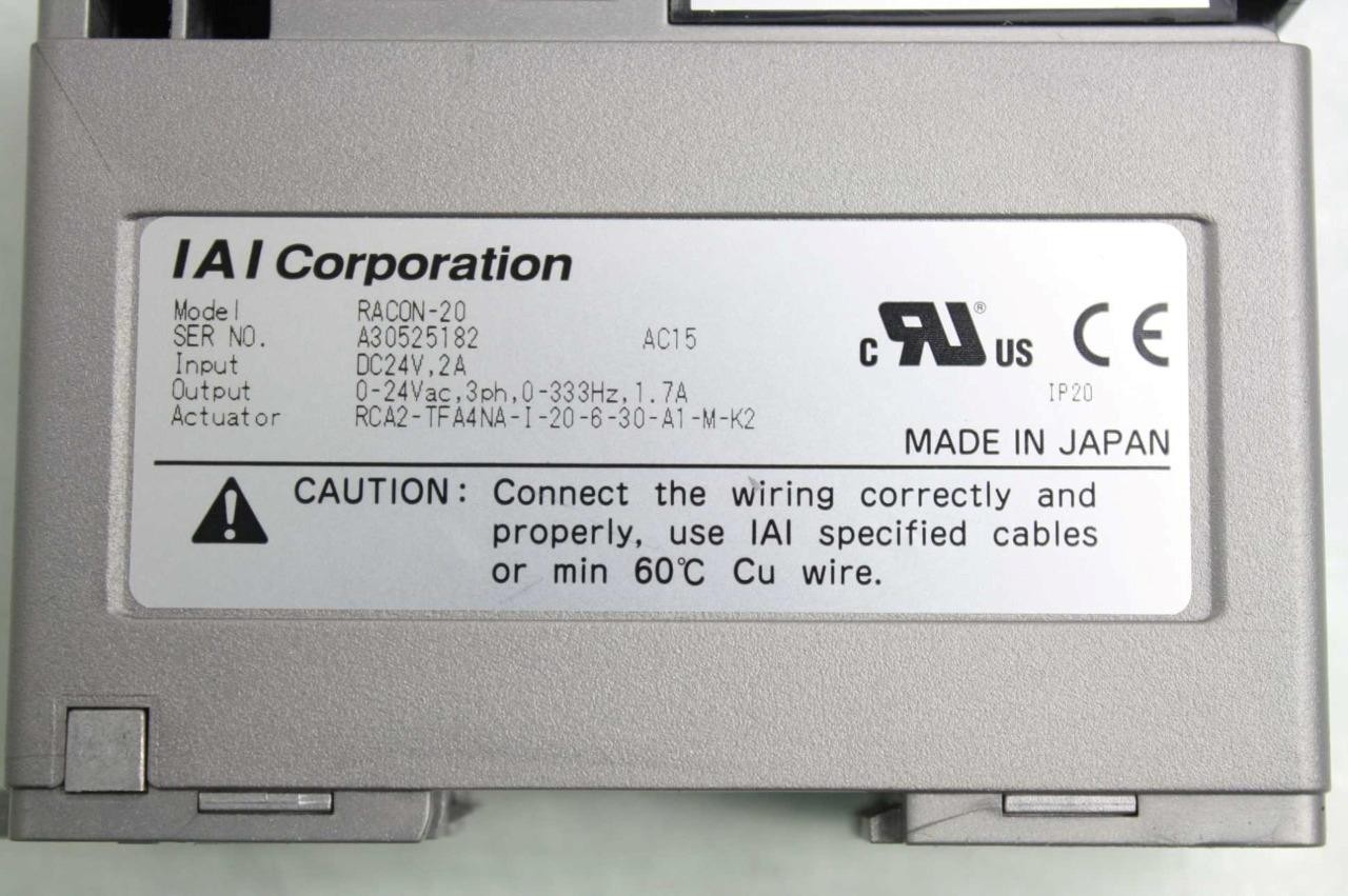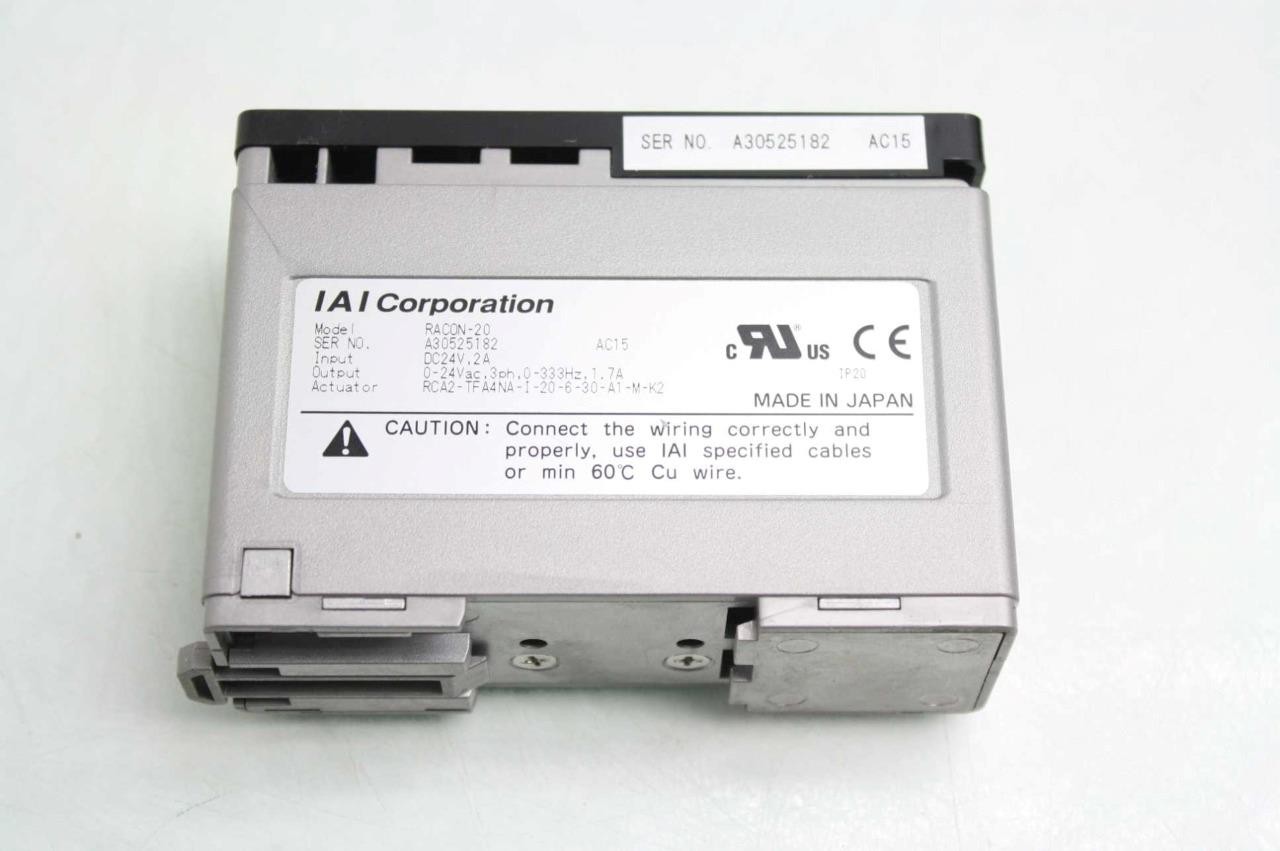 Here is a IAI / Robo Net single axis linear actuator controller. This was pulled from late model automationĂƒÂ‚ equipment and is in excellent functional and cosmetic shape. This comes with a 30 day right of return. Home POLICIES CONTACT US ABOUT ME FEEDBACK view all items Menu Home POLICIES CONTACT US ABOUT ME FEEDBACK view all items Categories Ball Screws / Shaft Couplings Cable Chains Cables for Automation Cameras for Automation Contactors/Relays Control Systems and PLCs Heating/Cooling for Automation Hydraulics Gear Reducers / Gear Heads Lab/Analytical Equipment Lasers Linear Actuators Linear Guides Liquid Valves/Flow Controls Manufacturing / Metalworking Motors For Automation Optics Power Supplies/Circuit Breaker Pneumatic Actuators /Cylinders Pneumatic Valves Safety Hardware for Automation Sensors Servo Motors / Servo Drives Stepper Motors /Stepper Drives Switches For Automation Transformers Vaccum Equipment Wiring for Automation IAI Robo Net RACON-20 Single Axis Robot Linear Actuator Controller w/ Cables Item Specifications
