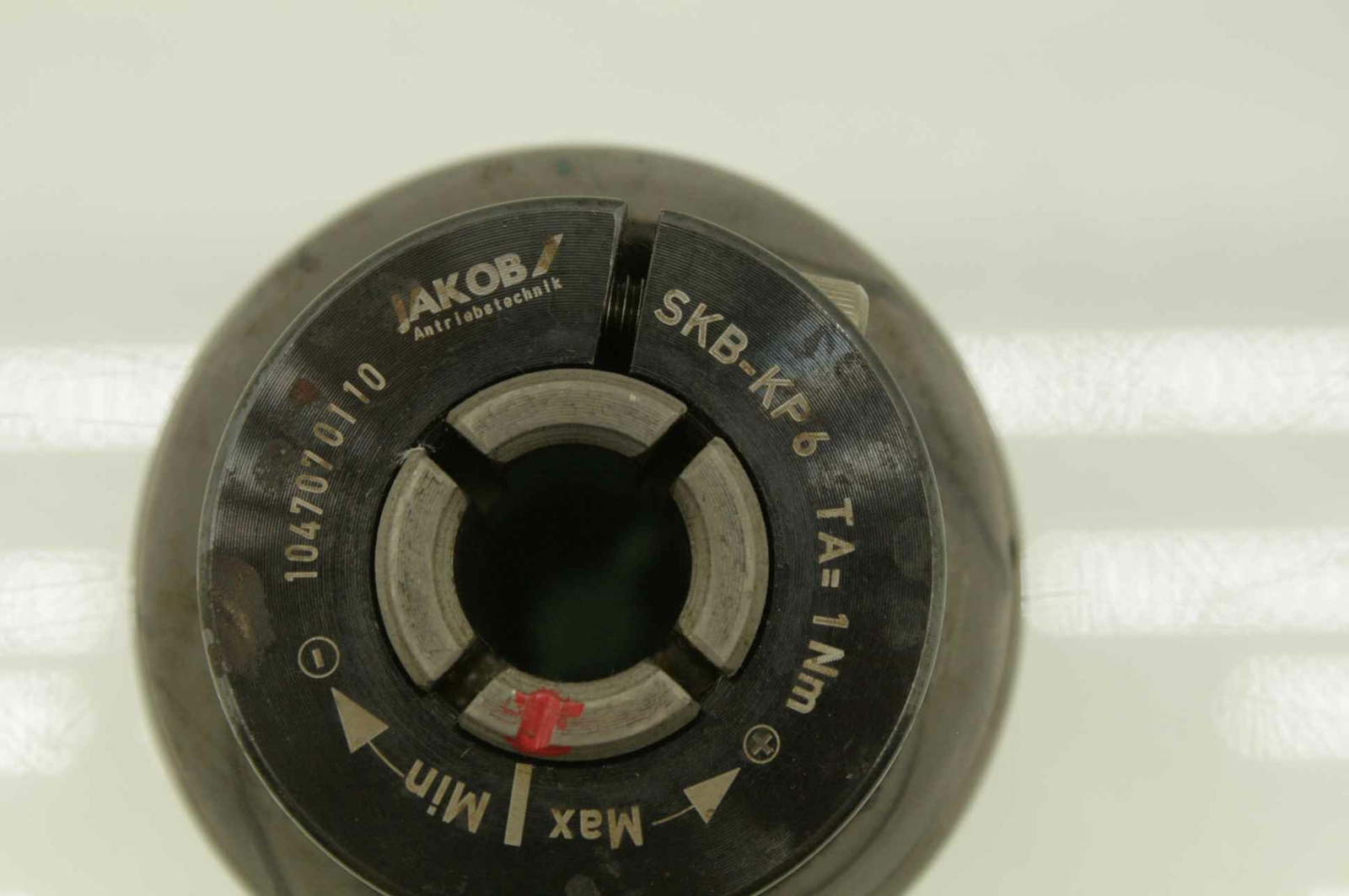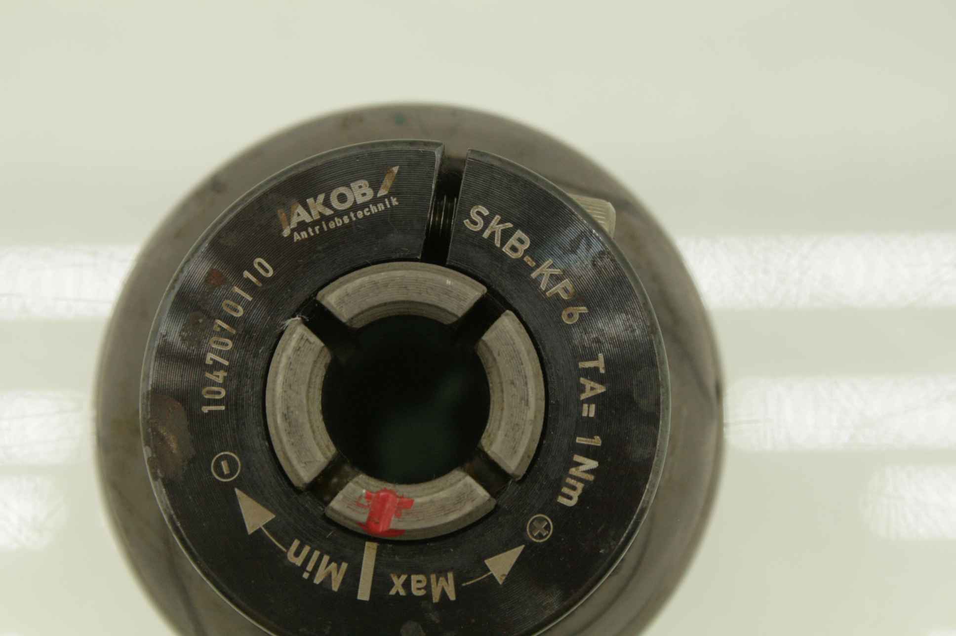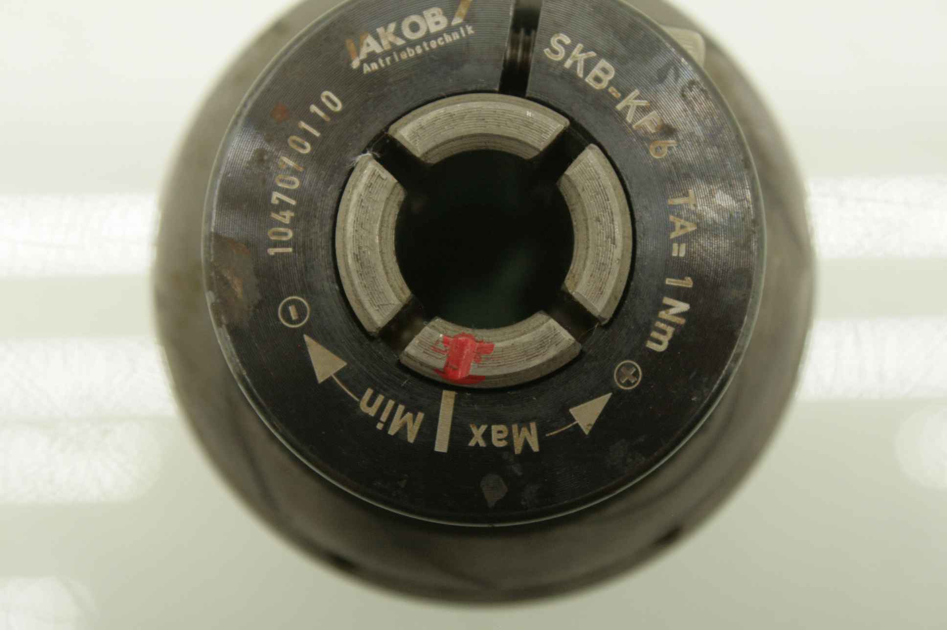 Here is a Jakob SKB-KP6 Safety Coupling. This has an adjustable torque from 2-6 Nm. This is configured with a 12mm bore on one end and a 5/16″ bor