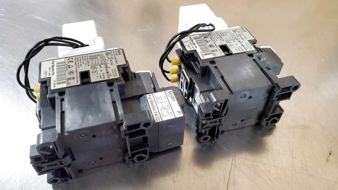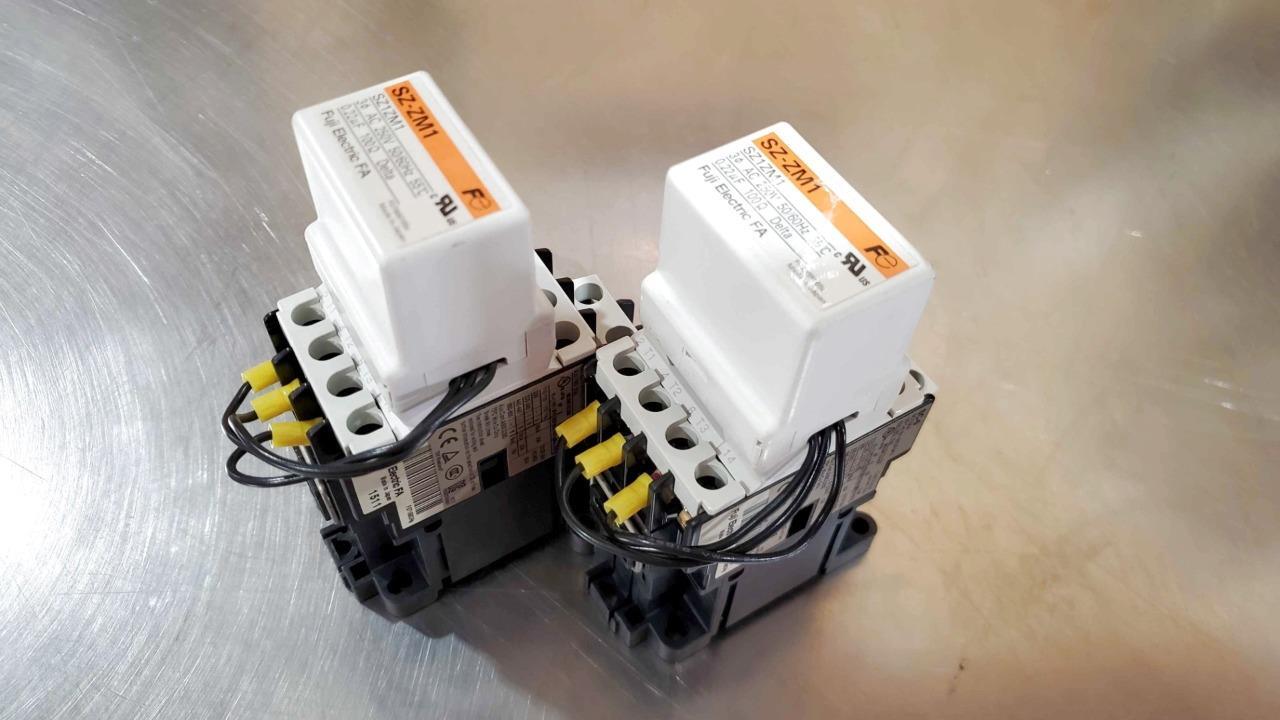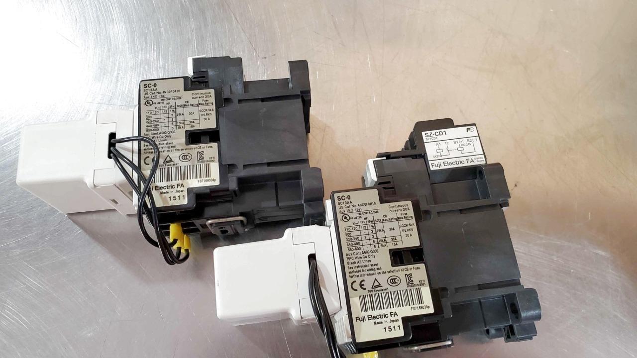 Here is a Lot of 2 Fuji SC13AA Contactors w/ SZ-ZM1 Surge Suppressors, (1) SZ-CD1. In good condition with minimal wear, pulled from working equipment.