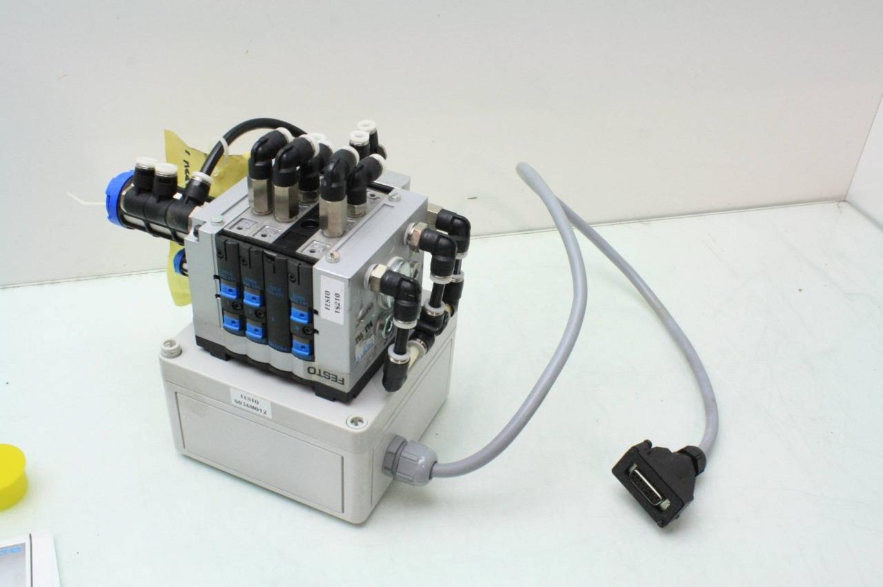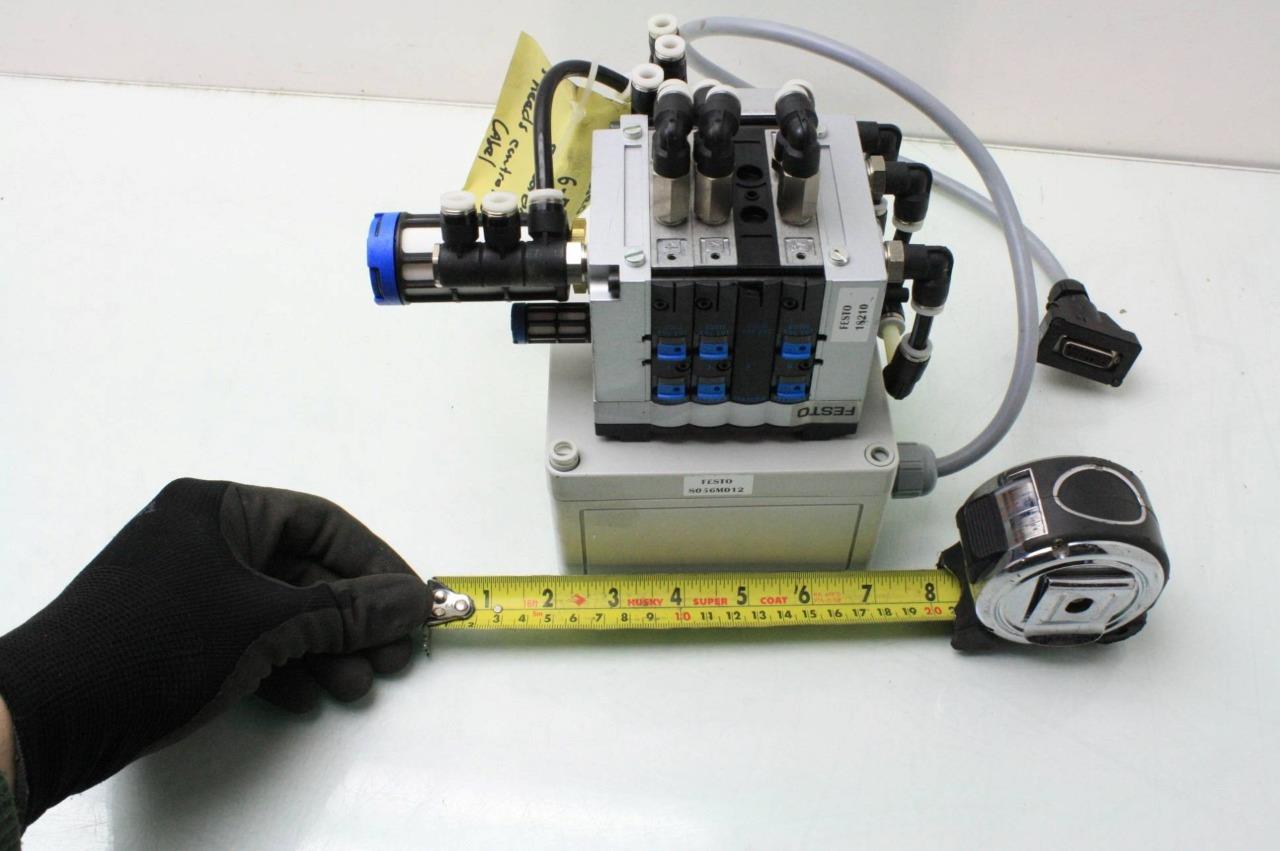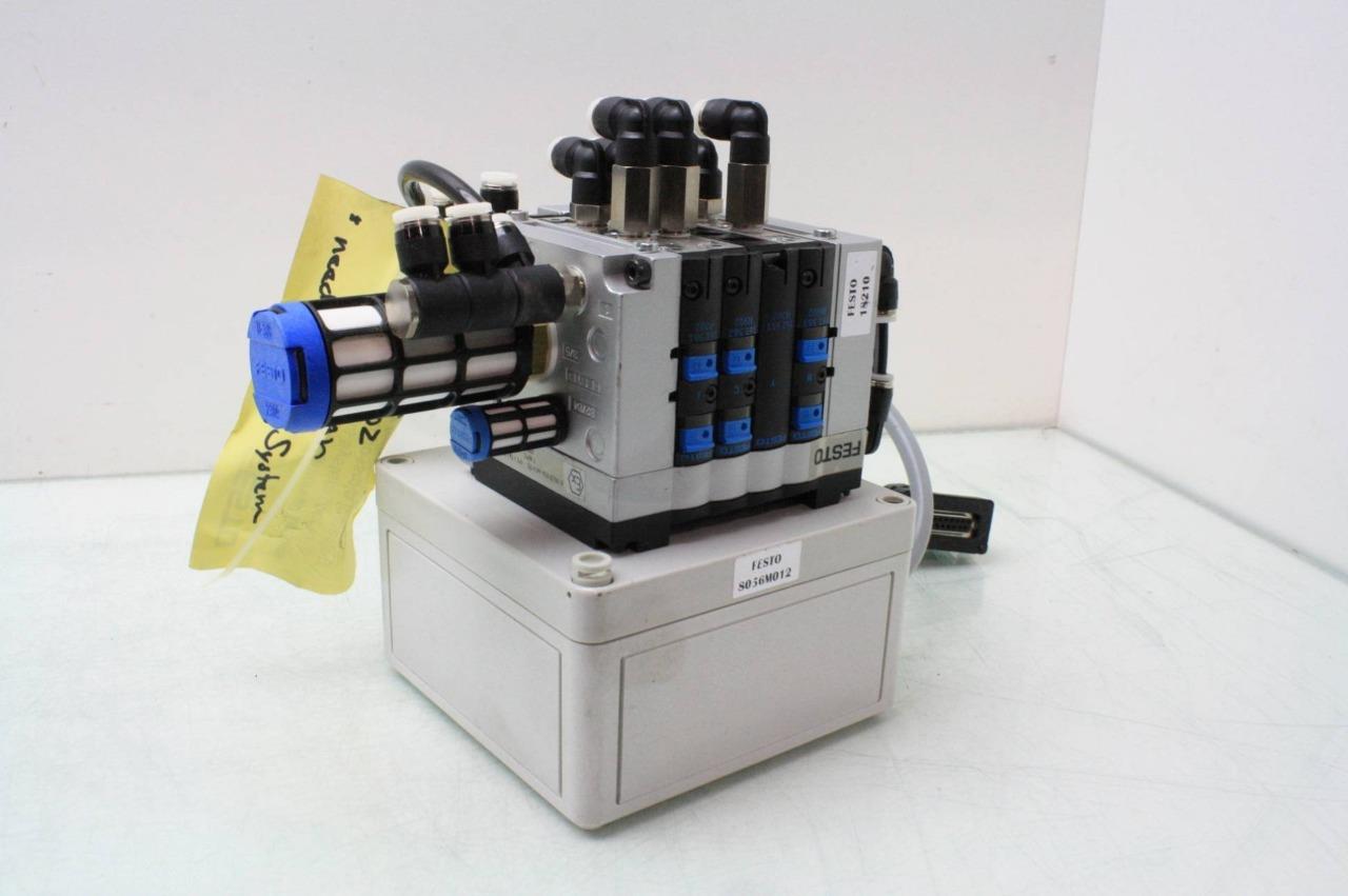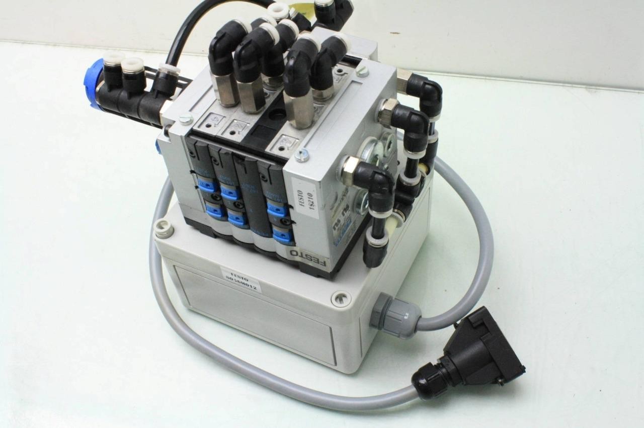 Here is a custom Festo manifold mounted solenoid valve block. This was configured, but was never installed or used. We have three available. All components shown / listed are included. Home POLICIES CONTACT US ABOUT ME FEEDBACK view all items Menu Home POLICIES CONTACT US ABOUT ME FEEDBACK view all items Categories Ball Screws / Shaft Couplings Cable Chains Cables for Automation Cameras for Automation Contactors/Relays Control Systems and PLCs Heating/Cooling for Automation Hydraulics Gear Reducers / Gear Heads Lab/Analytical Equipment Lasers Linear Actuators Linear Guides Liquid Valves/Flow Controls Manufacturing / Metalworking Motors For Automation Optics Power Supplies/Circuit Breaker Pneumatic Actuators /Cylinders Pneumatic Valves Safety Hardware for Automation Sensors Servo Motors / Servo Drives Stepper Motors /Stepper Drives Switches For Automation Transformers Vaccum Equipment Wiring for Automation New Festo Manifold CPV-14-VI / CPV14-GE-MP-4 / CPE14-M1H-3-OL-1/8 Valve item specifications
