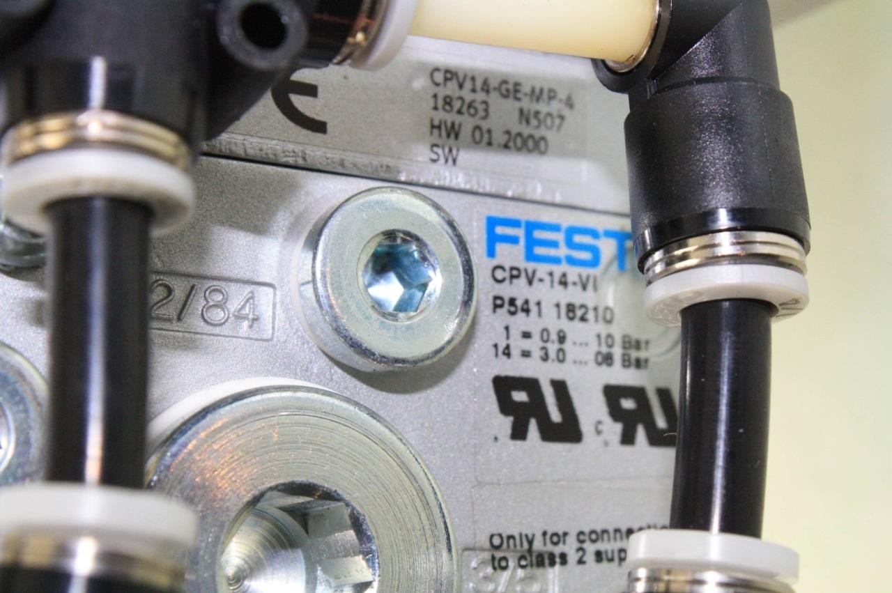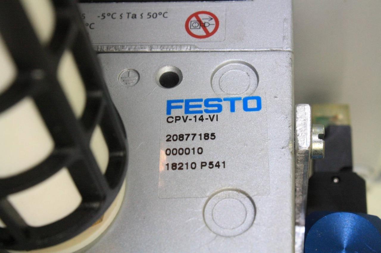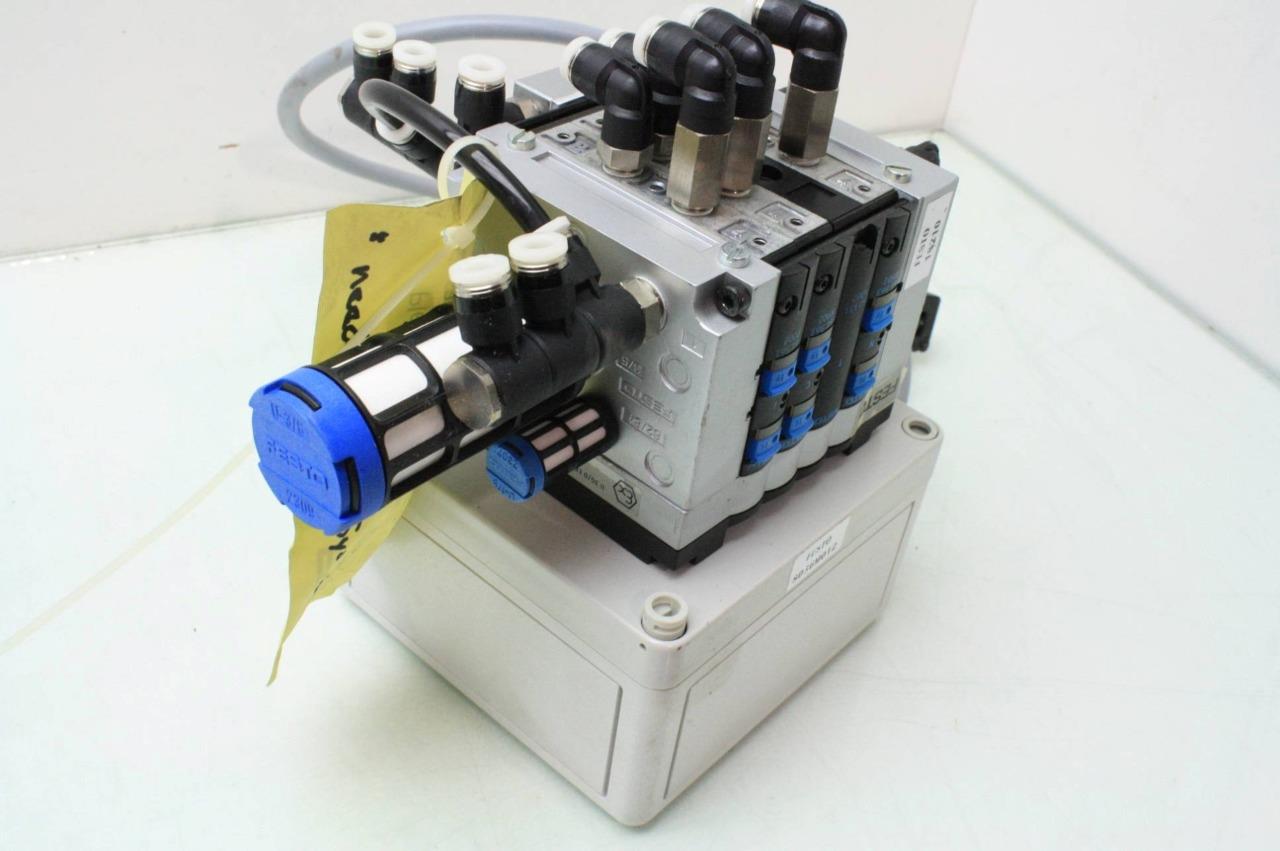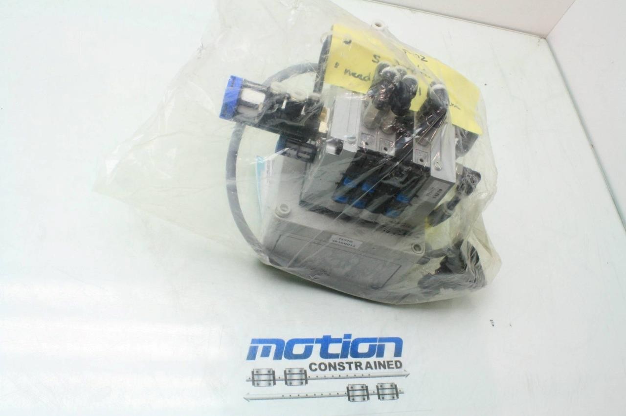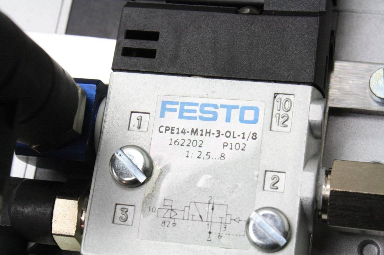 Here is a custom Festo manifold mounted solenoid valve block. This was configured, but was never installed or used. We have three available. All components shown / listed are included. Home POLICIES CONTACT US ABOUT ME FEEDBACK view all items Menu Home POLICIES CONTACT US ABOUT ME FEEDBACK view all items Categories Ball Screws / Shaft Couplings Cable Chains Cables for Automation Cameras for Automation Contactors/Relays Control Systems and PLCs Heating/Cooling for Automation Hydraulics Gear Reducers / Gear Heads Lab/Analytical Equipment Lasers Linear Actuators Linear Guides Liquid Valves/Flow Controls Manufacturing / Metalworking Motors For Automation Optics Power Supplies/Circuit Breaker Pneumatic Actuators /Cylinders Pneumatic Valves Safety Hardware for Automation Sensors Servo Motors / Servo Drives Stepper Motors /Stepper Drives Switches For Automation Transformers Vaccum Equipment Wiring for Automation New Festo Manifold CPV-14-VI / CPV14-GE-MP-4 / CPE14-M1H-3-OL-1/8 Valve item specifications
