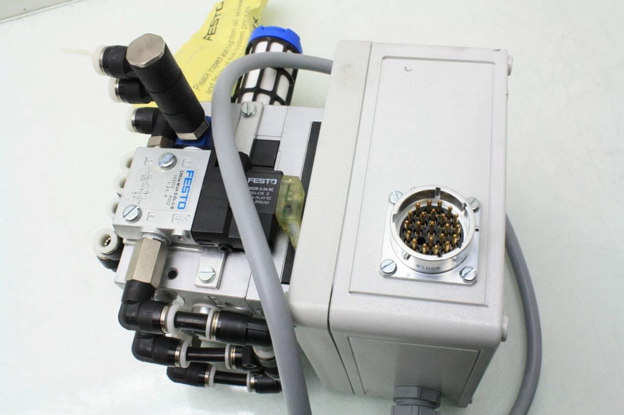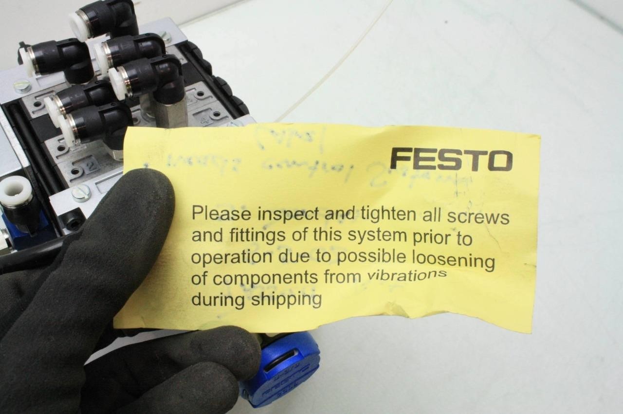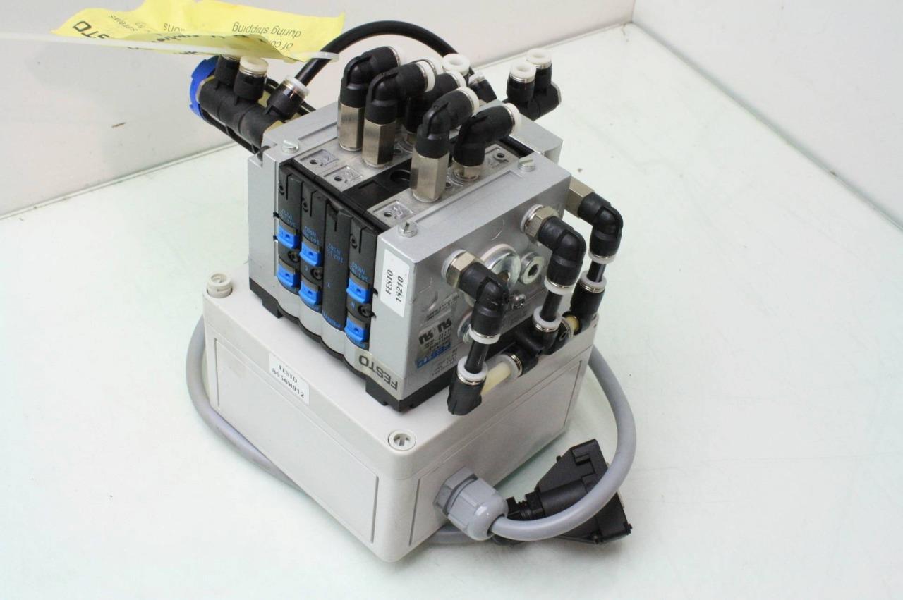 Here is a custom Festo manifold mounted solenoid valve block. This was configured, but was never installed or used. We have three available. All components shown / listed are included.