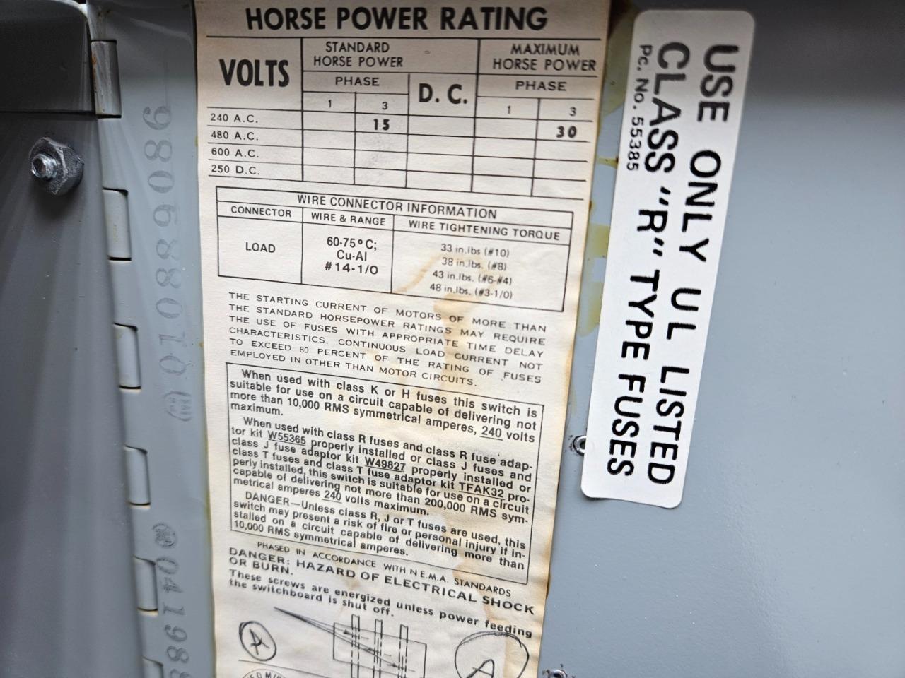 Voltage Rating Max.: 240 VAC