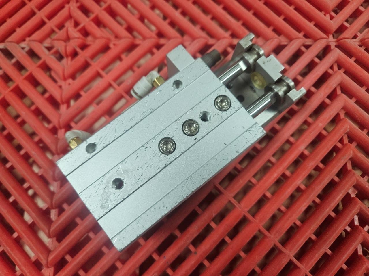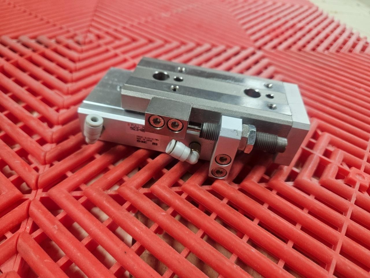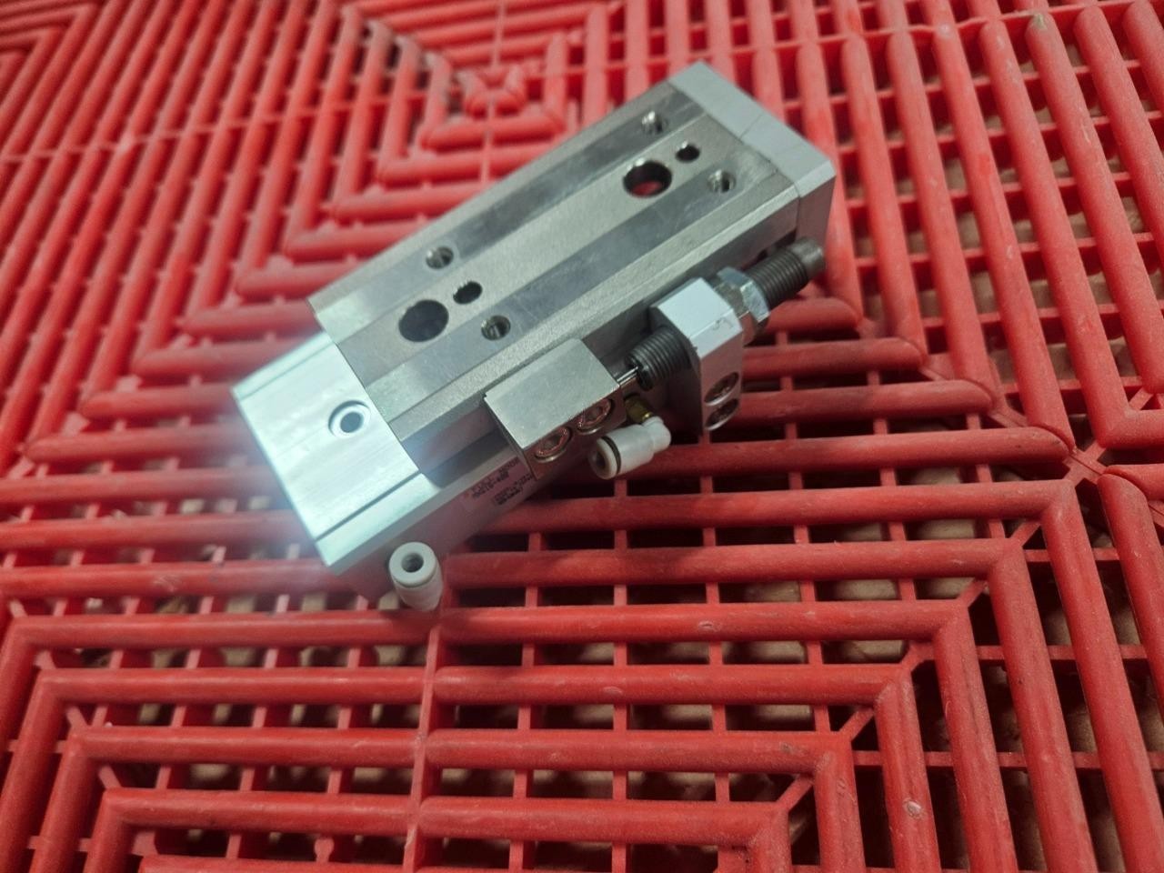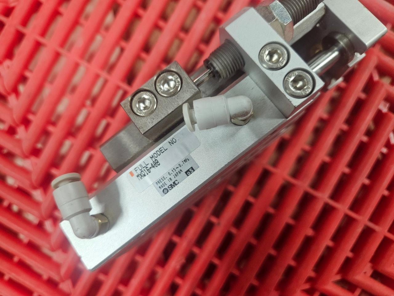 Here is an SMC MXQ16-40 guided air cylinder slide tables. There are a few light scratches on the base as shown. Otherrwise it is in very clean functional and cosmetic shape. The travel is smooth without play and no seal leaks. LOCATION: C0405 BIN: C-0405-G 02/25 CV 4/26 RL |
