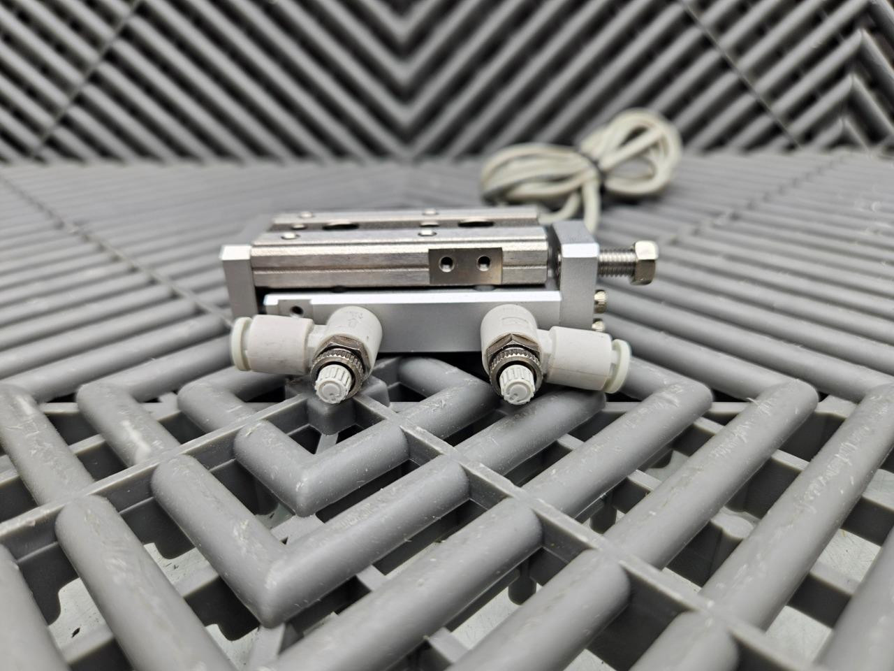 Here is an SMC dual rod guided air slide table. This was pulled from late-model automation equipment and is in excellent functional and cosmetic condition. This is sold with a 30-day right of return.