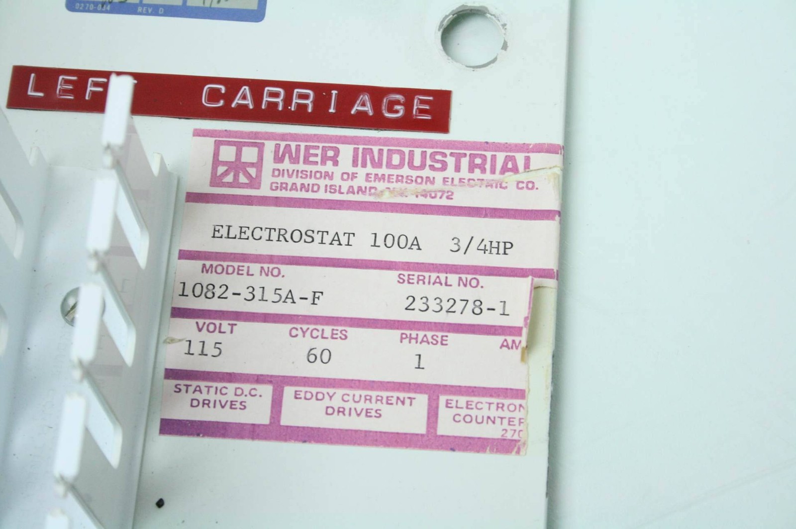 Here is a Wer Industrial regenerative drive for DC motors. This was pulled off a working conveyor line. Its obviously very old, but works fine. Its been in a sealed temperature controlled electrical enclosure throughout its life. This controller is guaranteed not DOA with a 30 day right of return. LOCATION: ; PA 04-02 14-12ListN 4/26 RL |