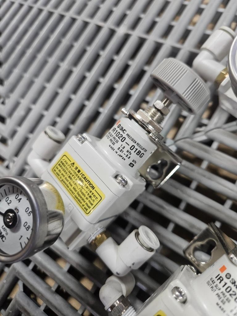Here is a lot of 5 SMC precision pressure regulators. These are rated for a 1 MPa max input pressure (145 PSI) and regulate from 1.5 – 116 PSI. All include mounting brackets and 6mm tubing push to connect fittings installed as shown. These are in clean cosmetic shape as shown. All 5 are included. Home POLICIES CONTACT US ABOUT ME FEEDBACK view all items Menu Home POLICIES CONTACT US ABOUT ME FEEDBACK view all items Categories Ball Screws / Shaft Couplings Cable Chains Cables for Automation Cameras for Automation Contactors/Relays Control Systems and PLCs Heating/Cooling for Automation Hydraulics Gear Reducers / Gear Heads Lab/Analytical Equipment Lasers Linear Actuators Linear Guides Liquid Valves/Flow Controls Manufacturing / Metalworking Motors For Automation Optics Power Supplies/Circuit Breaker Pneumatic Actuators /Cylinders Pneumatic Valves Safety Hardware for Automation Sensors Servo Motors / Servo Drives Stepper Motors /Stepper Drives Switches For Automation Transformers Vaccum Equipment Wiring for Automation (5) SMC IR1020-01BG Precision Pressure Regulator 0.01- 0.8 MPa Item Specifications