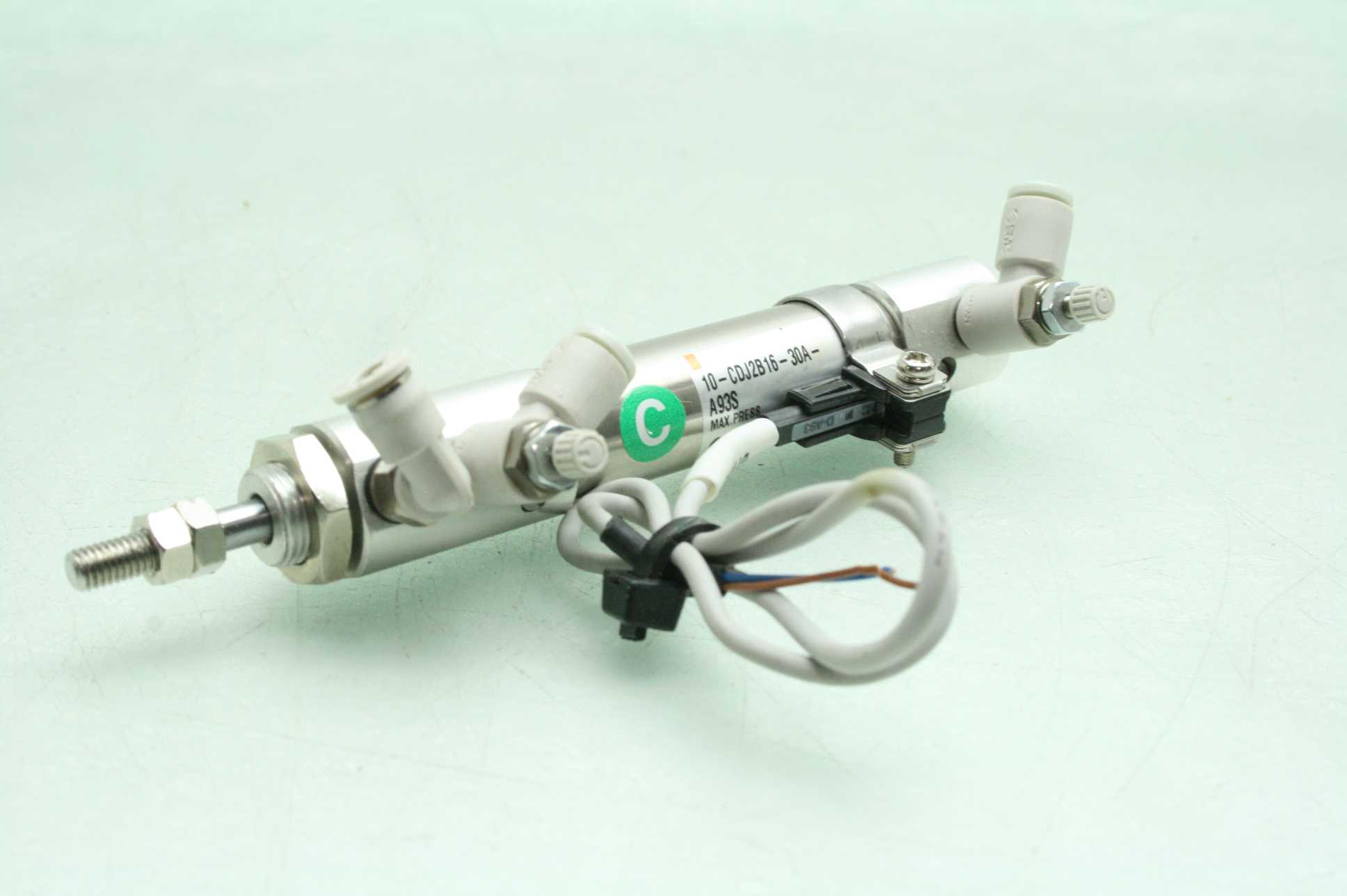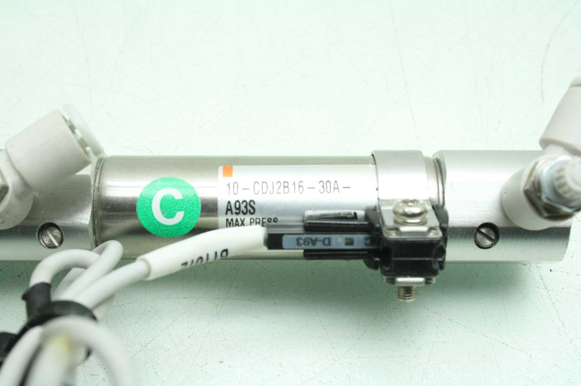 Here is an SMC pneumatic air cylinder w/ D-A93 limit switch. This was pulled from late model automation equipment & is in excellent functional & cosmetic condition with smooth action. This comes with a 30 day right of return. Home POLICIES CONTACT US ABOUT ME FEEDBACK view all items Menu Home POLICIES CONTACT US ABOUT ME FEEDBACK view all items Categories Ball Screws / Shaft Couplings Cable Chains Cables for Automation Cameras for Automation Contactors/Relays Control Systems and PLCs Heating/Cooling for Automation Hydraulics Gear Reducers / Gear Heads Lab/Analytical Equipment Lasers Linear Actuators Linear Guides Liquid Valves/Flow Controls Manufacturing / Metalworking Motors For Automation Optics Power Supplies/Circuit Breaker Pneumatic Actuators /Cylinders Pneumatic Valves Safety Hardware for Automation Sensors Servo Motors / Servo Drives Stepper Motors /Stepper Drives Switches For Automation Transformers Vaccum Equipment Wiring for Automation SMC 10-CDJ2B16-30A Pneumatic Compact Cylinder, 30mm Stroke, D-A93 Limit Sensor item specifications