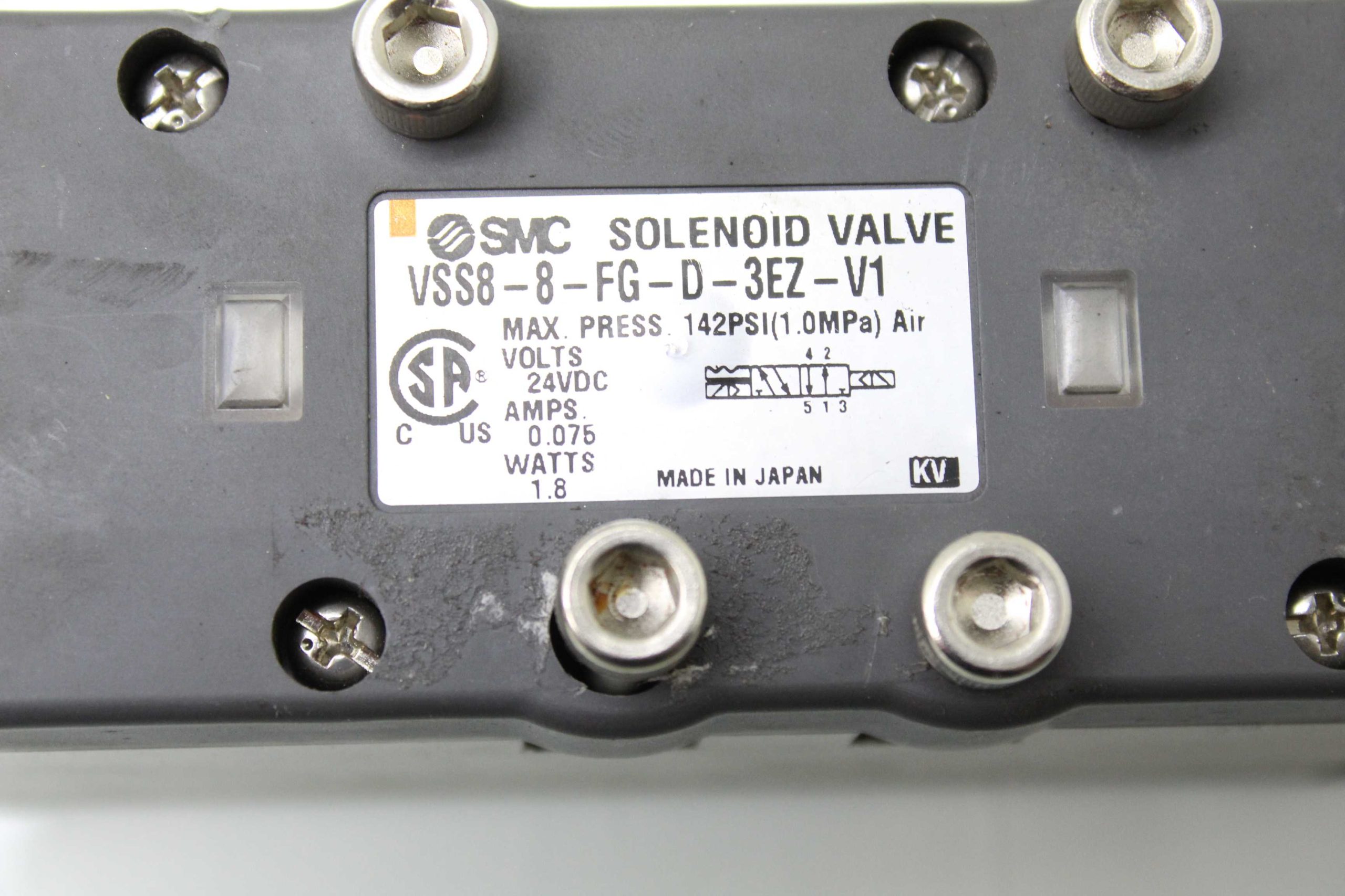 Here is a SMC solenoid valve with 24V DC coils. This was pulled from late model automation equipment and is in excellent functional condition. This is guaranteed working and comes with a 30 day right of return. Home POLICIES CONTACT US ABOUT ME FEEDBACK view all items Menu Home POLICIES CONTACT US ABOUT ME FEEDBACK view all items Categories Ball Screws / Shaft Couplings Cable Chains Cables for Automation Cameras for Automation Contactors/Relays Control Systems and PLCs Heating/Cooling for Automation Hydraulics Gear Reducers / Gear Heads Lab/Analytical Equipment Lasers Linear Actuators Linear Guides Liquid Valves/Flow Controls Manufacturing / Metalworking Motors For Automation Optics Power Supplies/Circuit Breaker Pneumatic Actuators /Cylinders Pneumatic Valves Safety Hardware for Automation Sensors Servo Motors / Servo Drives Stepper Motors /Stepper Drives Switches For Automation Transformers Vaccum Equipment Wiring for Automation SMC VSS-8-FG-D-3EZ-V1 Solenoid Valve / 24V DC Coil / 142 PSI Item Specifications