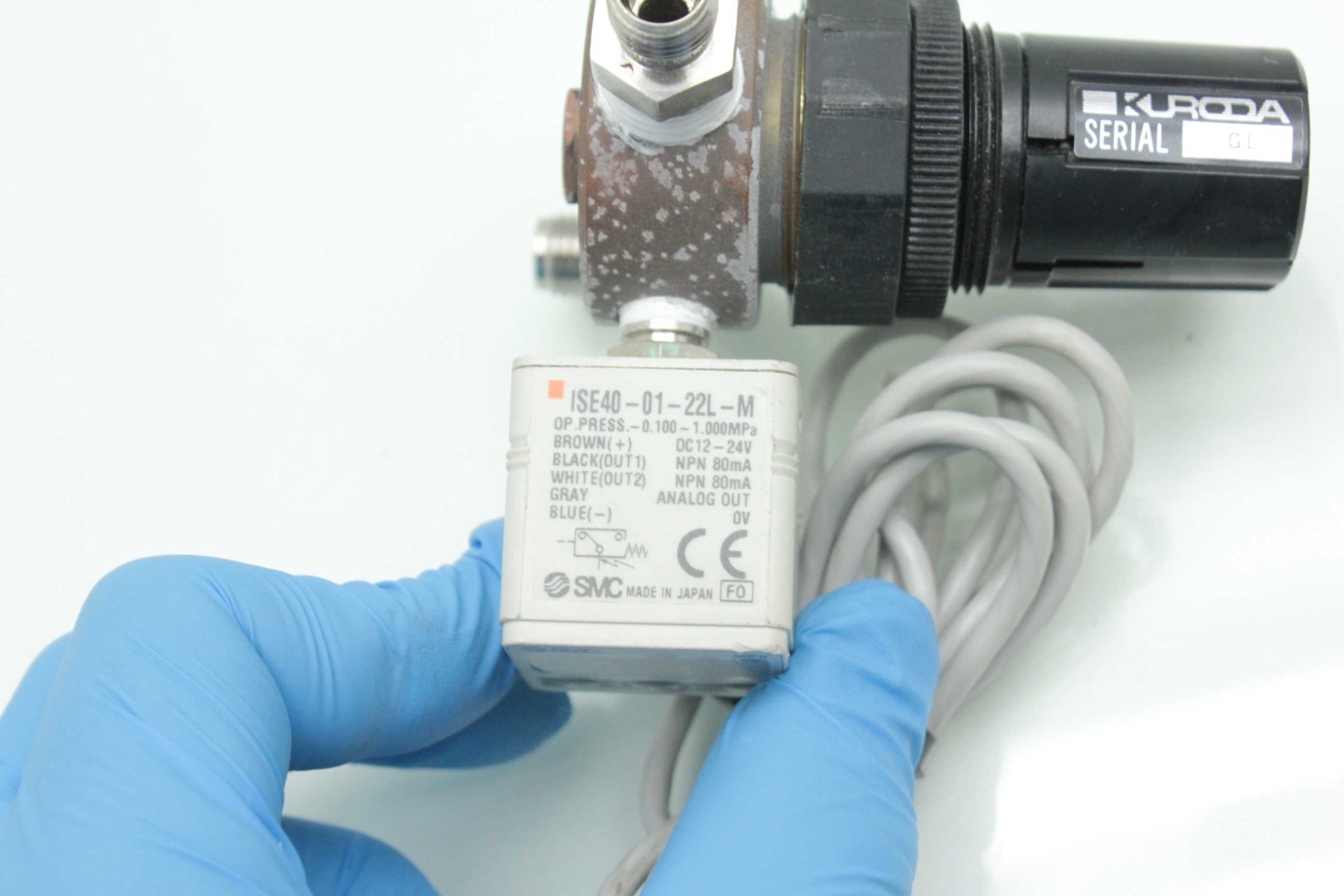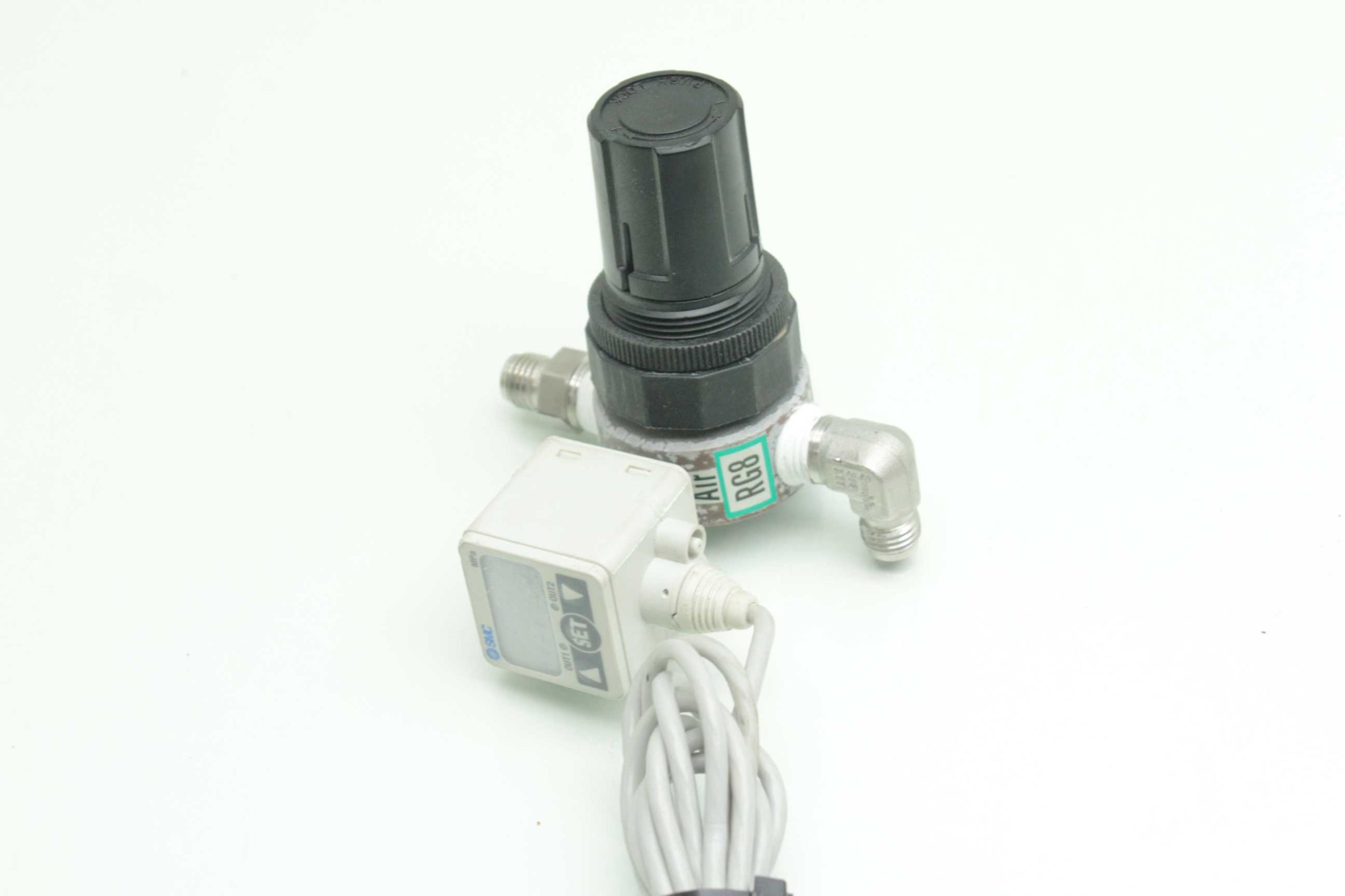 Here is a Kuroda regulator valve with an SMC pressure sensor. This is in excellent functional and cosmetic condition. This comes with a 30 day right of return.