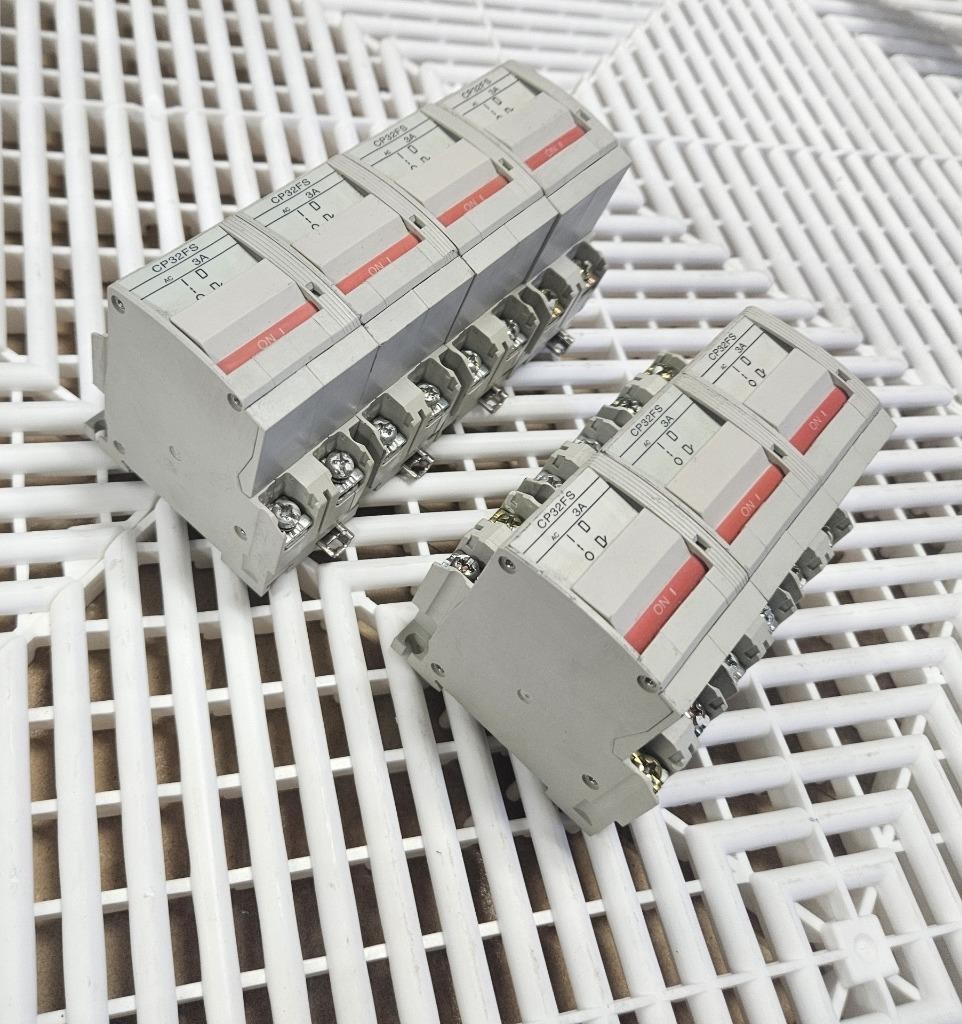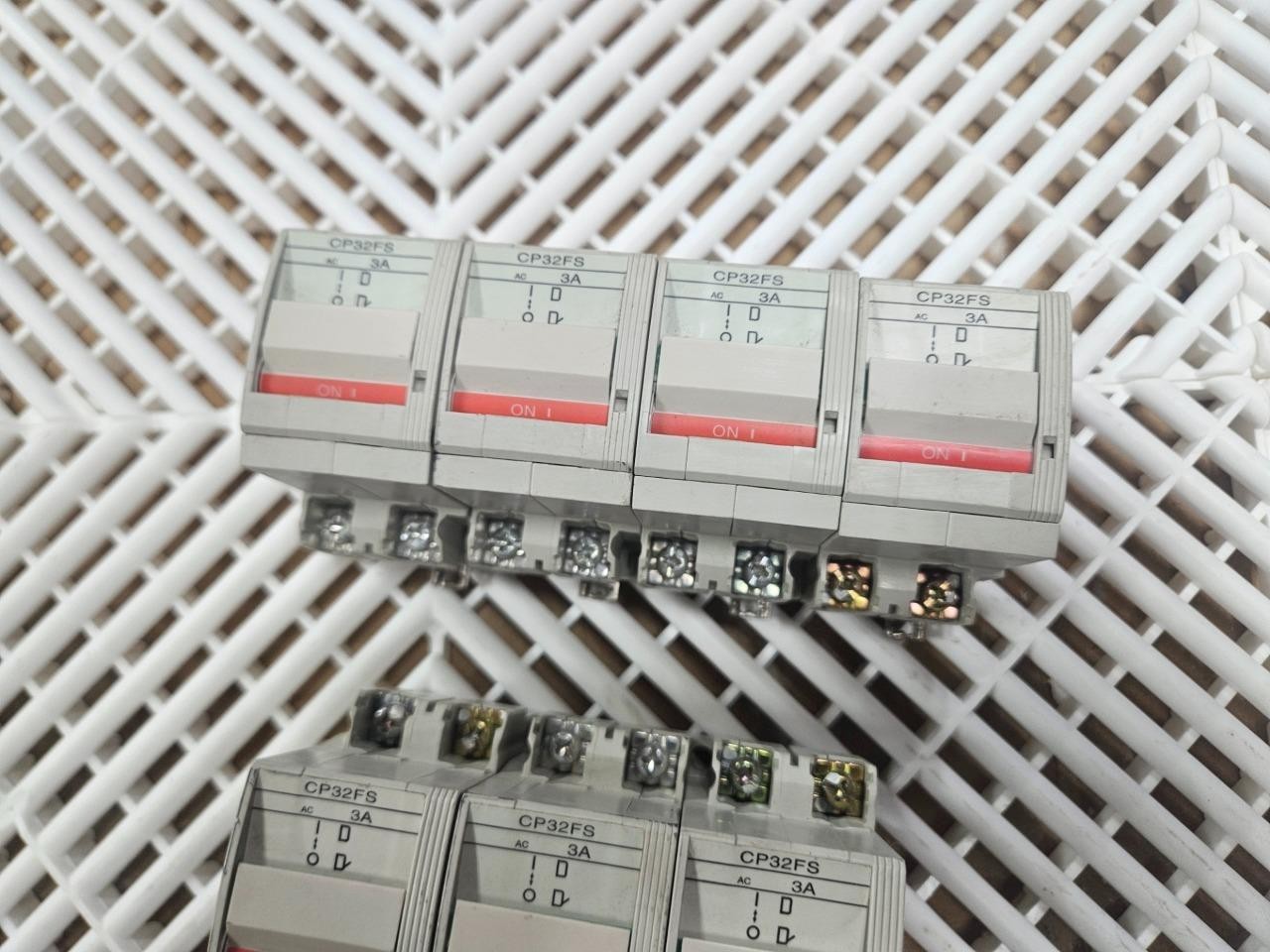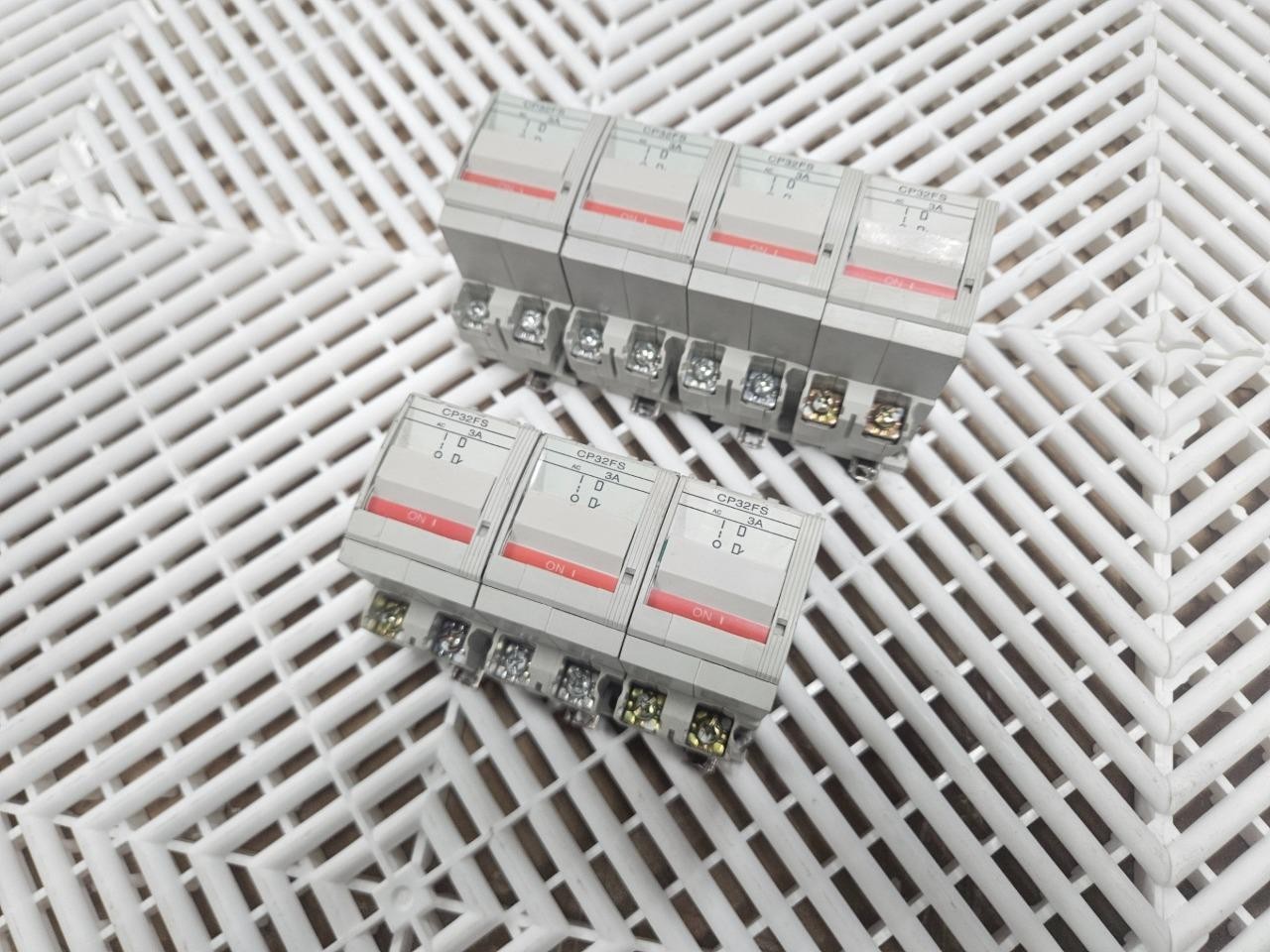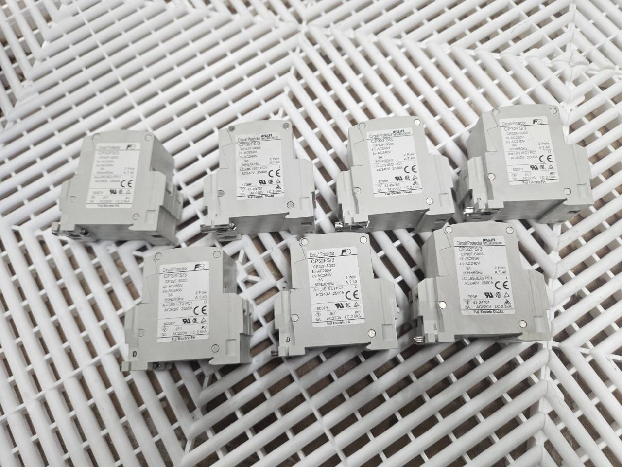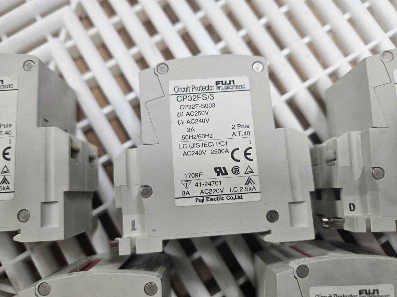Here is a lot of 7 Fuji Electric CP32FS/3 series circuit breakers. These are rated for 3A and up to 250V. These are all in good functional and cosmetic condition and all pictured are included.