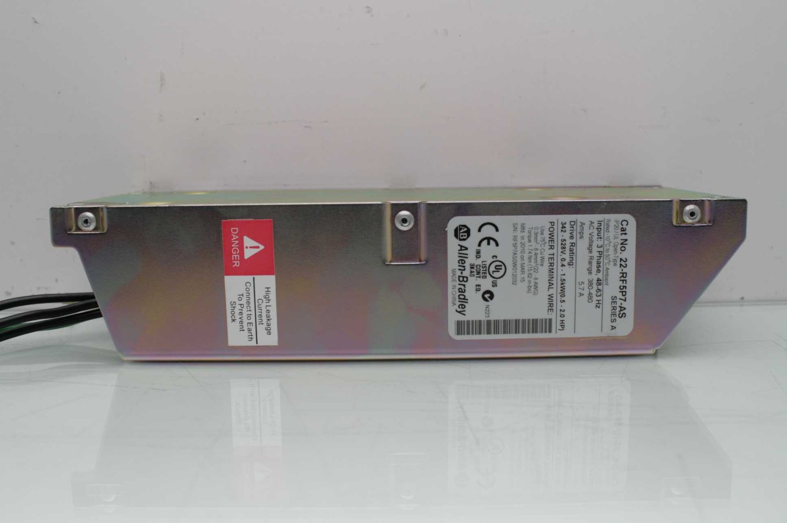 Here is an Allen Bradley 22RF5P7-AS Powerflex 4 EMI filter. These are in good functional and cosmetic shape.Â