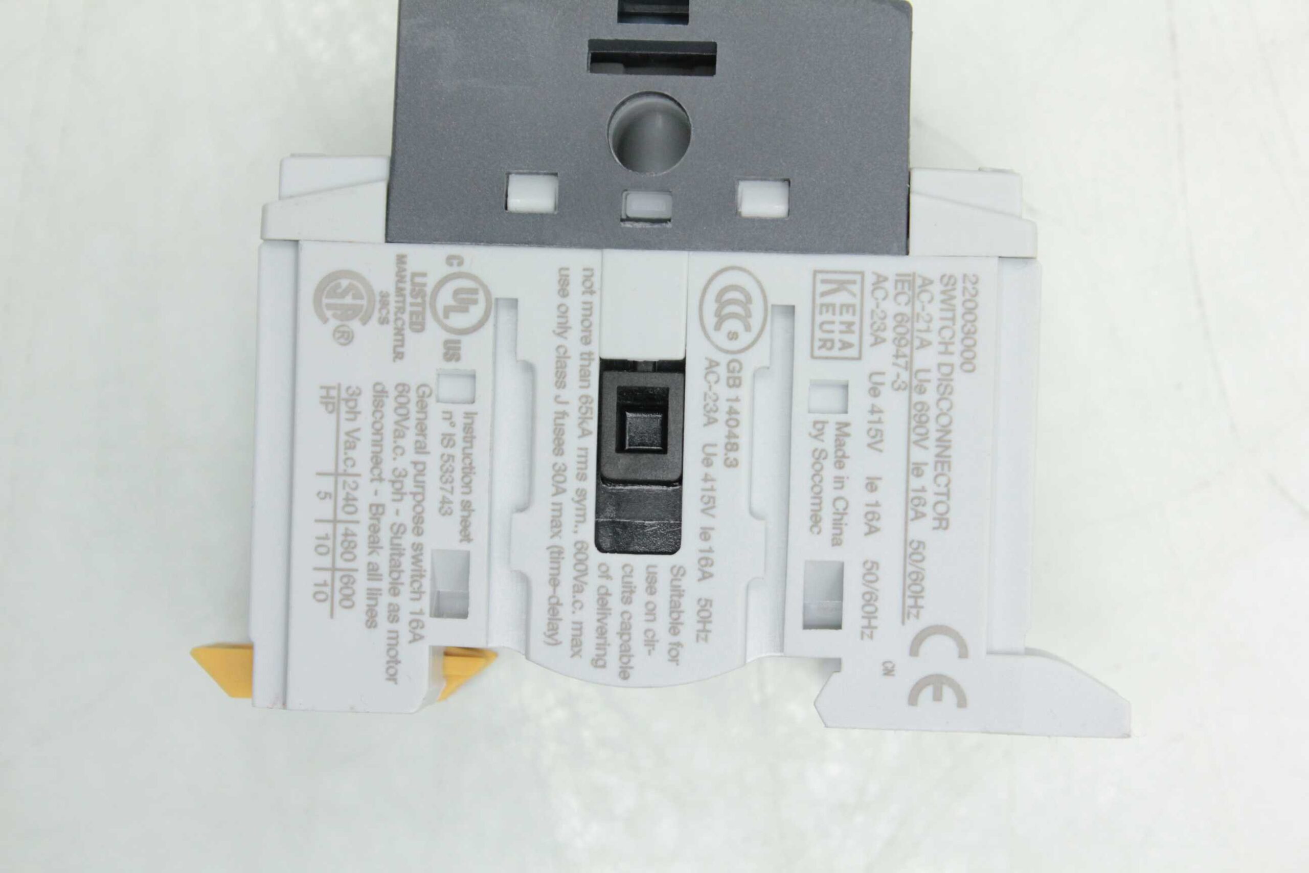 Here is a Socomec load break switch. This was pulled from brand new equipment. It was installed, but never used. This comes with a 30 day right of return. Home POLICIES CONTACT US ABOUT ME FEEDBACK view all items Menu Home POLICIES CONTACT US ABOUT ME FEEDBACK view all items Categories Ball Screws / Shaft Couplings Cable Chains Cables for Automation Cameras for Automation Contactors/Relays Control Systems and PLCs Heating/Cooling for Automation Hydraulics Gear Reducers / Gear Heads Lab/Analytical Equipment Lasers Linear Actuators Linear Guides Liquid Valves/Flow Controls Manufacturing / Metalworking Motors For Automation Optics Power Supplies/Circuit Breaker Pneumatic Actuators /Cylinders Pneumatic Valves Safety Hardware for Automation Sensors Servo Motors / Servo Drives Stepper Motors /Stepper Drives Switches For Automation Transformers Vaccum Equipment Wiring for Automation New Socomec Sirco M16 Load Break Switch 16A Circuit Breaker DIN Rail 3 Pole Item Specifications
