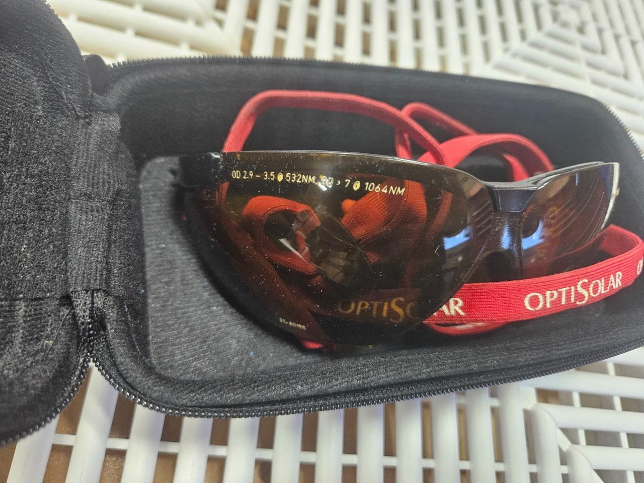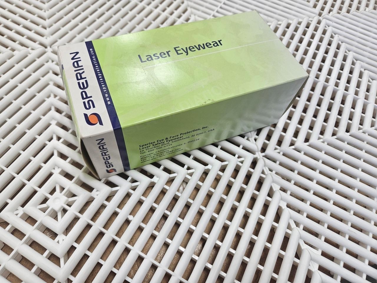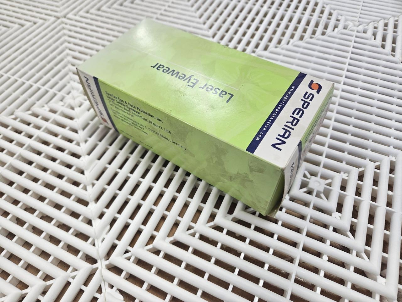 Here are some Sperian laser safety glasses for diode type lasers. This has opacity of OD > 7 for lasers in the 190-380nm and 1064 nm wavelength and OD 2.9 – 3.5 in the 532 nm range. These appear to be new or very lightly used in original case and box as shown. Â