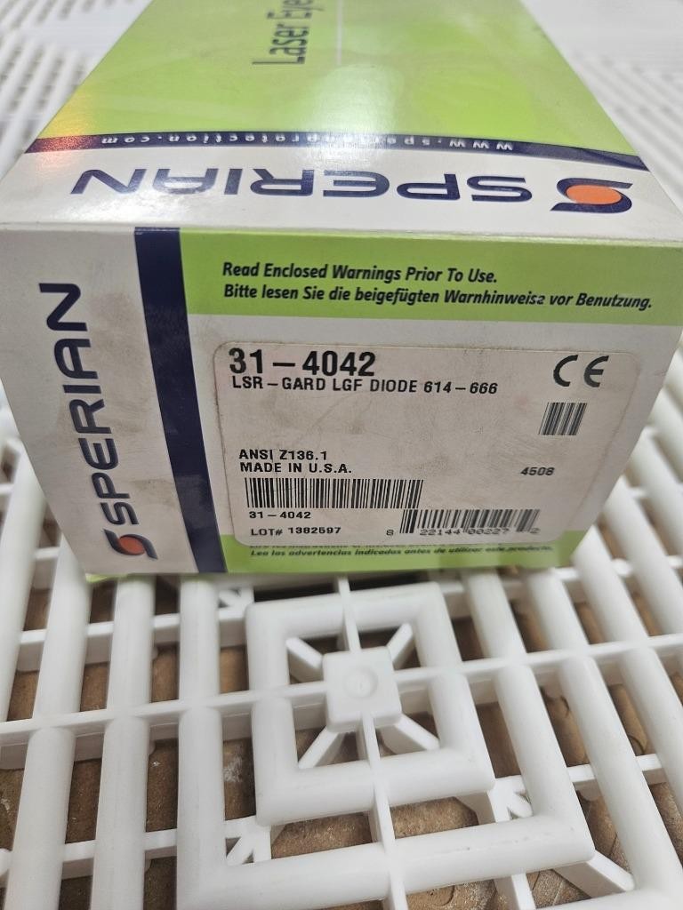 Here are some Sperian laser safety glasses for diode type lasers. This has opacity of OD > 7 for lasers in the 190-380nm and 1064 nm wavelength and OD 2.9 – 3.5 in the 532 nm range. These appear to be new or very lightly used in original case and box as shown. Home POLICIES CONTACT US ABOUT ME FEEDBACK view all items Menu Home POLICIES CONTACT US ABOUT ME FEEDBACK view all items Categories Ball Screws / Shaft Couplings Cable Chains Cables for Automation Cameras for Automation Contactors/Relays Control Systems and PLCs Heating/Cooling for Automation Hydraulics Gear Reducers / Gear Heads Lab/Analytical Equipment Lasers Linear Actuators Linear Guides Liquid Valves/Flow Controls Manufacturing / Metalworking Motors For Automation Optics Power Supplies/Circuit Breaker Pneumatic Actuators /Cylinders Pneumatic Valves Safety Hardware for Automation Sensors Servo Motors / Servo Drives Stepper Motors /Stepper Drives Switches For Automation Transformers Vaccum Equipment Wiring for Automation Sperian Laser-Gard 31-4042 Laser Diode Safety Glasses OD > 7 190-380nm Item Specifications