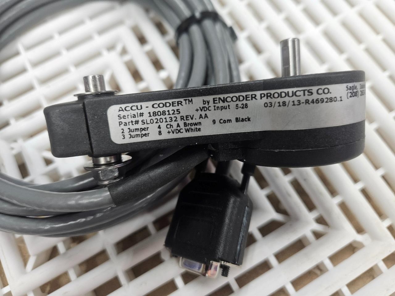 Here is an Accu-Coder SL020132 incremental shaft encoder. Home POLICIES CONTACT US ABOUT ME FEEDBACK view all items Menu Home POLICIES CONTACT US ABOUT ME FEEDBACK view all items Categories Ball Screws / Shaft Couplings Cable Chains Cables for Automation Cameras for Automation Contactors/Relays Control Systems and PLCs Heating/Cooling for Automation Hydraulics Gear Reducers / Gear Heads Lab/Analytical Equipment Lasers Linear Actuators Linear Guides Liquid Valves/Flow Controls Manufacturing / Metalworking Motors For Automation Optics Power Supplies/Circuit Breaker Pneumatic Actuators /Cylinders Pneumatic Valves Safety Hardware for Automation Sensors Servo Motors / Servo Drives Stepper Motors /Stepper Drives Switches For Automation Transformers Vaccum Equipment Wiring for Automation Accu-Coder SL020132 Incremental Shaft Encoder 1/4″ Shaft Item Specifications