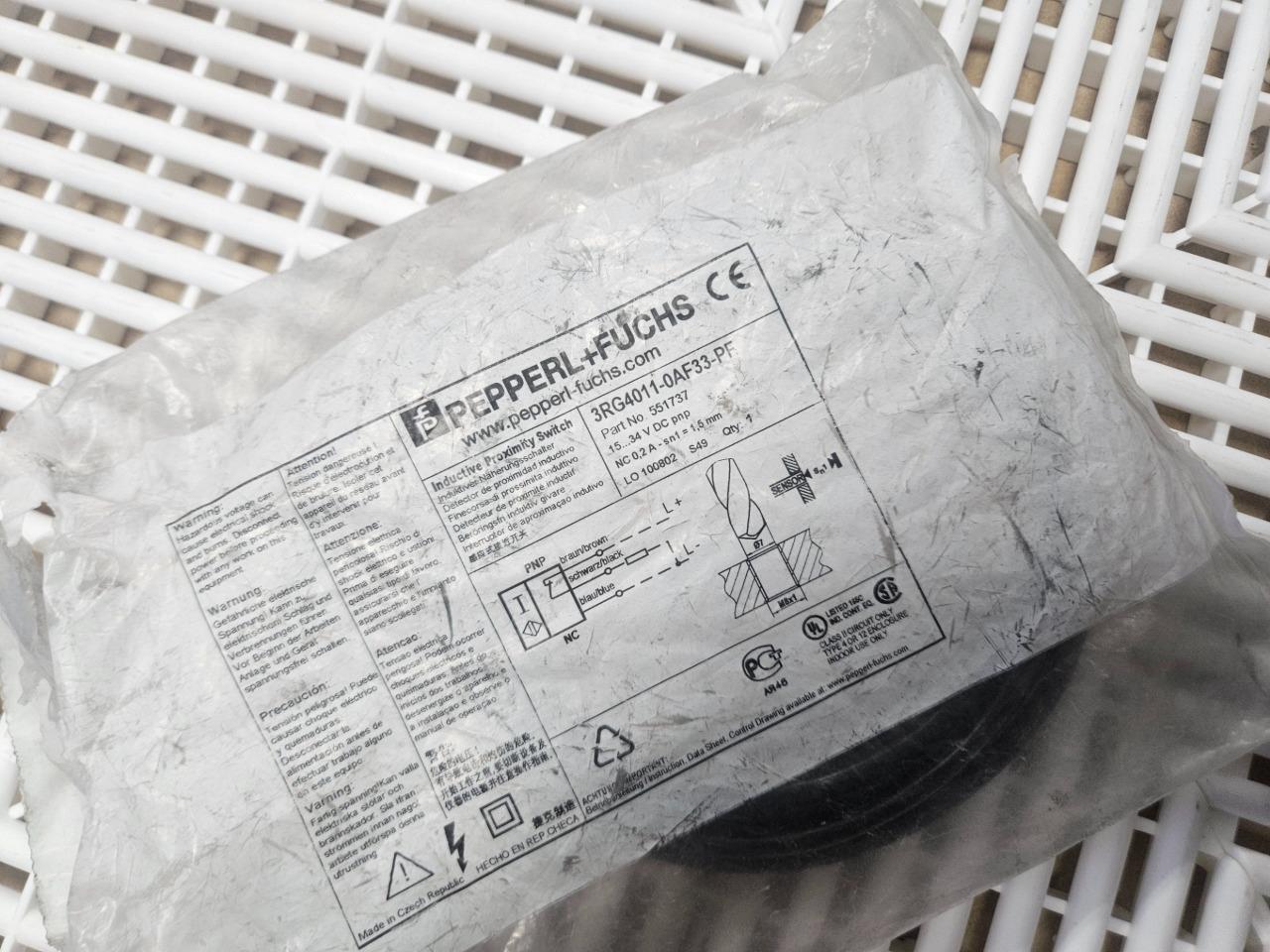 Here is a new Pepperl and Fuchs 3RG4011-0AF33-PF inductive proximity sensor. This is new in factory packaging as shown.