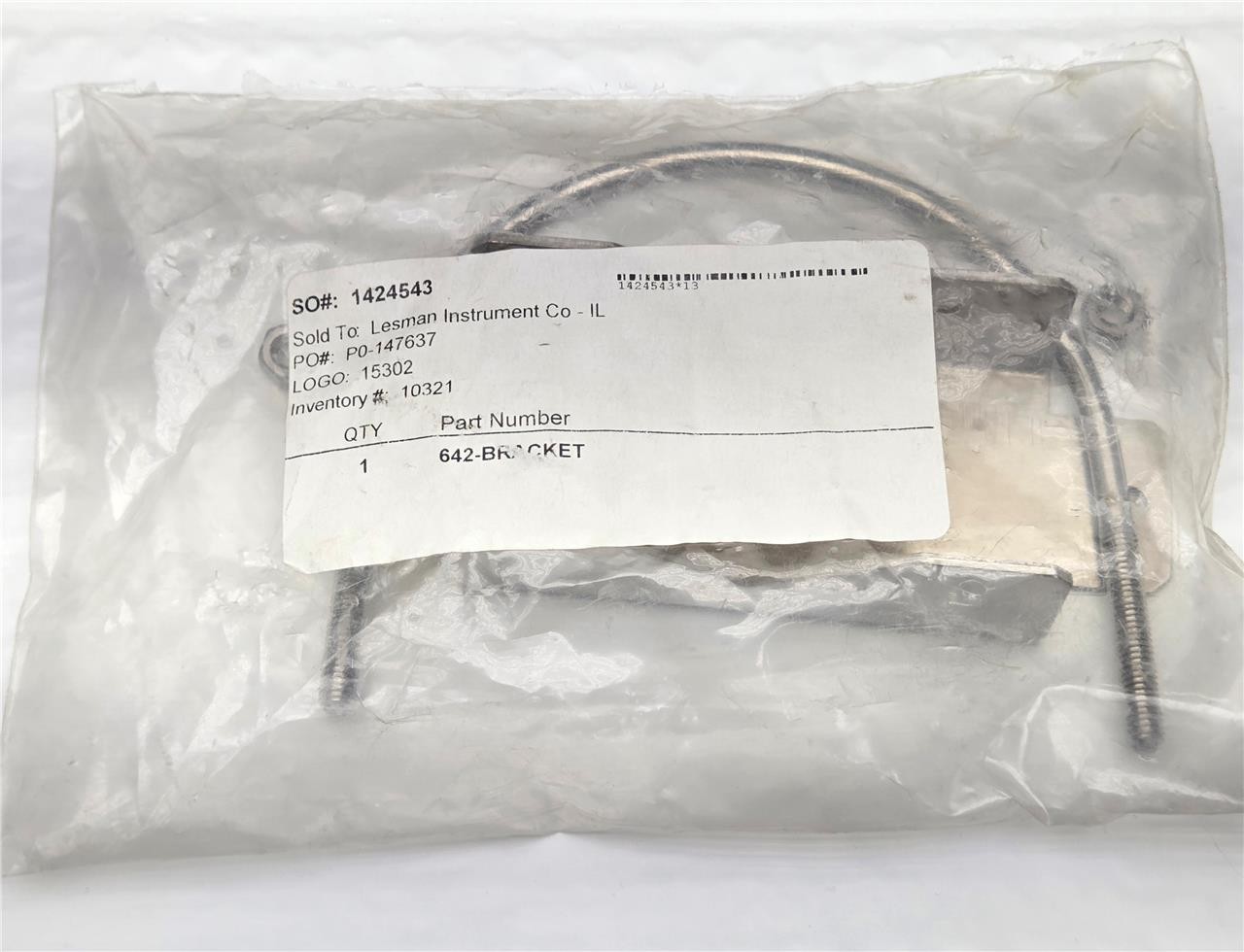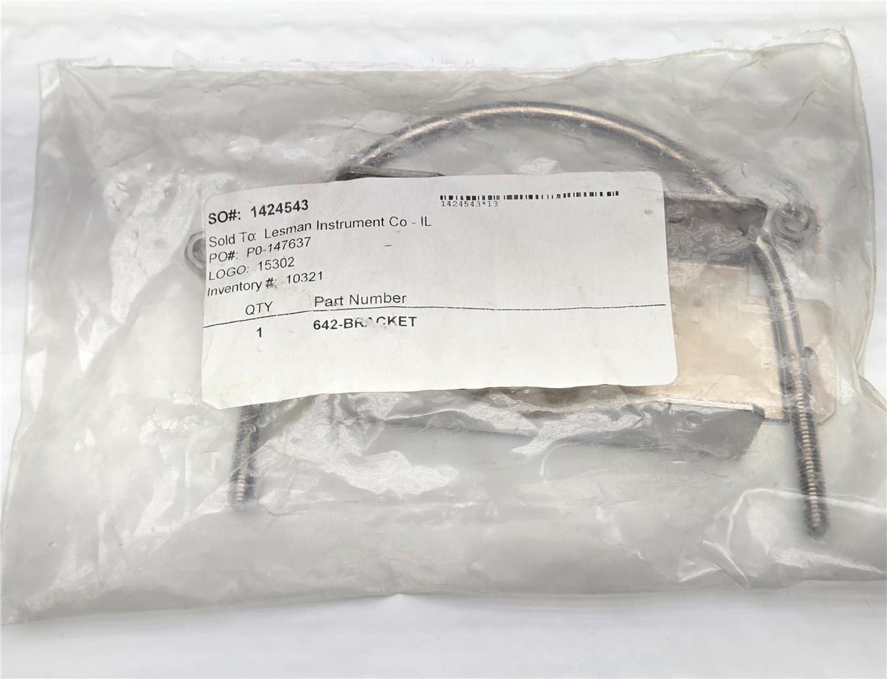 Here is a New Pyromation 642-BRACKET Mounting Bracket for 642 Series Transmitters. These are designed for mounting 642 series transmitters. New in an open package, never used. This purchase is for ONLY the mounting bracket. Pictured with the transmitter for reference. Home POLICIES CONTACT US ABOUT ME FEEDBACK view all items Menu Home POLICIES CONTACT US ABOUT ME FEEDBACK view all items Categories Ball Screws / Shaft Couplings Cable Chains Cables for Automation Cameras for Automation Contactors/Relays Control Systems and PLCs Heating/Cooling for Automation Hydraulics Gear Reducers / Gear Heads Lab/Analytical Equipment Lasers Linear Actuators Linear Guides Liquid Valves/Flow Controls Manufacturing / Metalworking Motors For Automation Optics Power Supplies/Circuit Breaker Pneumatic Actuators /Cylinders Pneumatic Valves Safety Hardware for Automation Sensors Servo Motors / Servo Drives Stepper Motors /Stepper Drives Switches For Automation Transformers Vaccum Equipment Wiring for Automation New Pyromation 642-BRACKET Mounting Bracket for 642 Series Transmitters item specifications