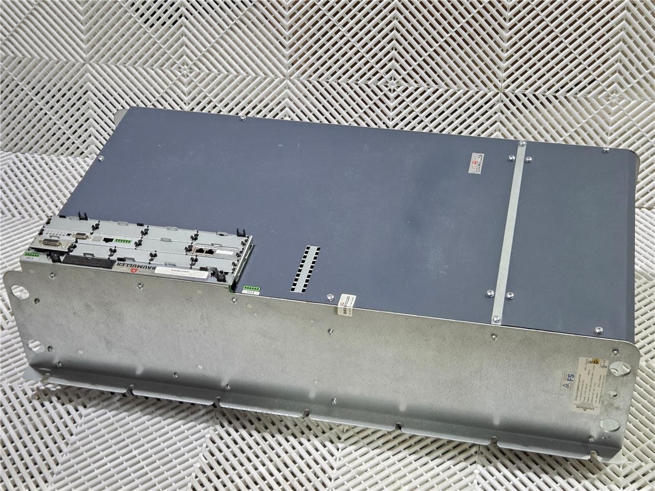 Here is a Baumuller BM4463-FI1-01644-S01-0311-SET Inverter Drive. This item is used, but in a like-new condition, as it was implemented on a line that was taken down before actually being put into use. The internals are very clean and seem to be in great condition. Includes the BM4463-FI1-01244-S01-0311 Main Drive as shown in the pictures. Home POLICIES CONTACT US ABOUT ME FEEDBACK view all items Menu Home POLICIES CONTACT US ABOUT ME FEEDBACK view all items Categories Ball Screws / Shaft Couplings Cable Chains Cables for Automation Cameras for Automation Contactors/Relays Control Systems and PLCs Heating/Cooling for Automation Hydraulics Gear Reducers / Gear Heads Lab/Analytical Equipment Lasers Linear Actuators Linear Guides Liquid Valves/Flow Controls Manufacturing / Metalworking Motors For Automation Optics Power Supplies/Circuit Breaker Pneumatic Actuators /Cylinders Pneumatic Valves Safety Hardware for Automation Sensors Servo Motors / Servo Drives Stepper Motors /Stepper Drives Switches For Automation Transformers Vaccum Equipment Wiring for Automation Baumuller BM4463-FI1-01644-S01-0311-SET Inverter Drive 400/480VAC, 250-300A item specifications