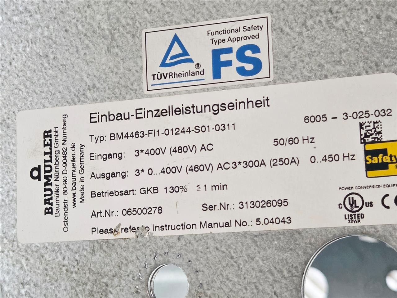 Baumuller BM4463-FI1-01644-S01-0311-SET Inverter Drive 400/480VAC, 250-300A – Used