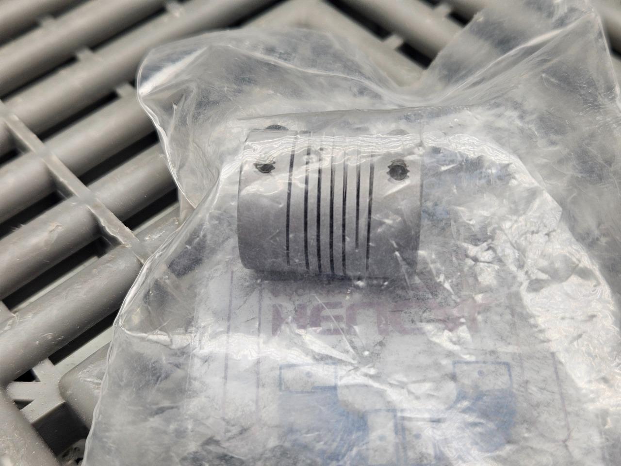 Here is a Helical Flexible Shaft Coupling AC075-12-8. This has a 1/4″ shaft bore on one end and a 3/8″ shaft bore on the other. These are new in package as shown.Â