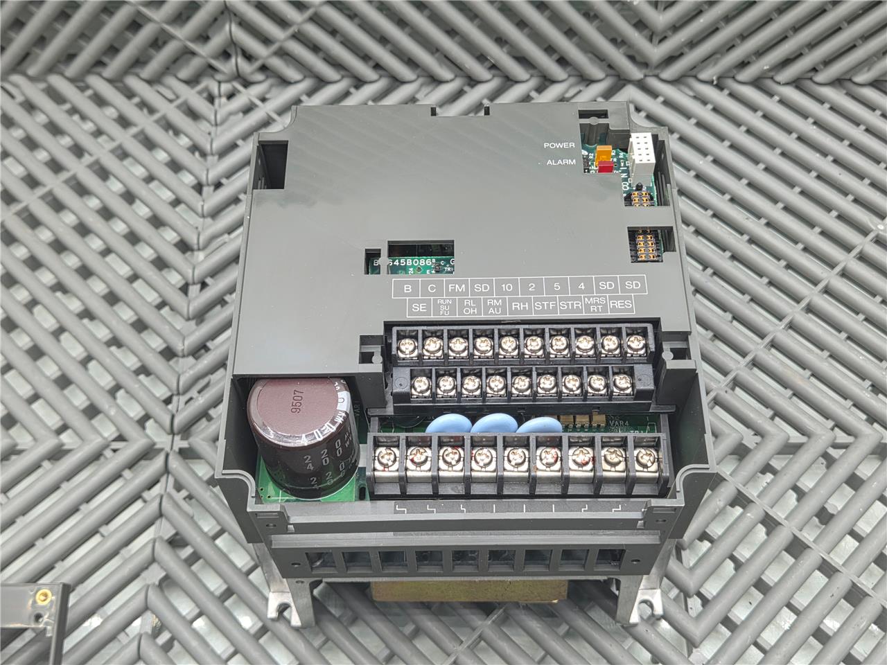 Here is a Mitsubishi Freqrol Variable Frequency Drive AC Inverter Z024-1.5k. This is rated for 2 HP and has a 200-230V AC input. This is in good functional shape. It does have some minor cosmetic plastic damage under the cover, as shown.