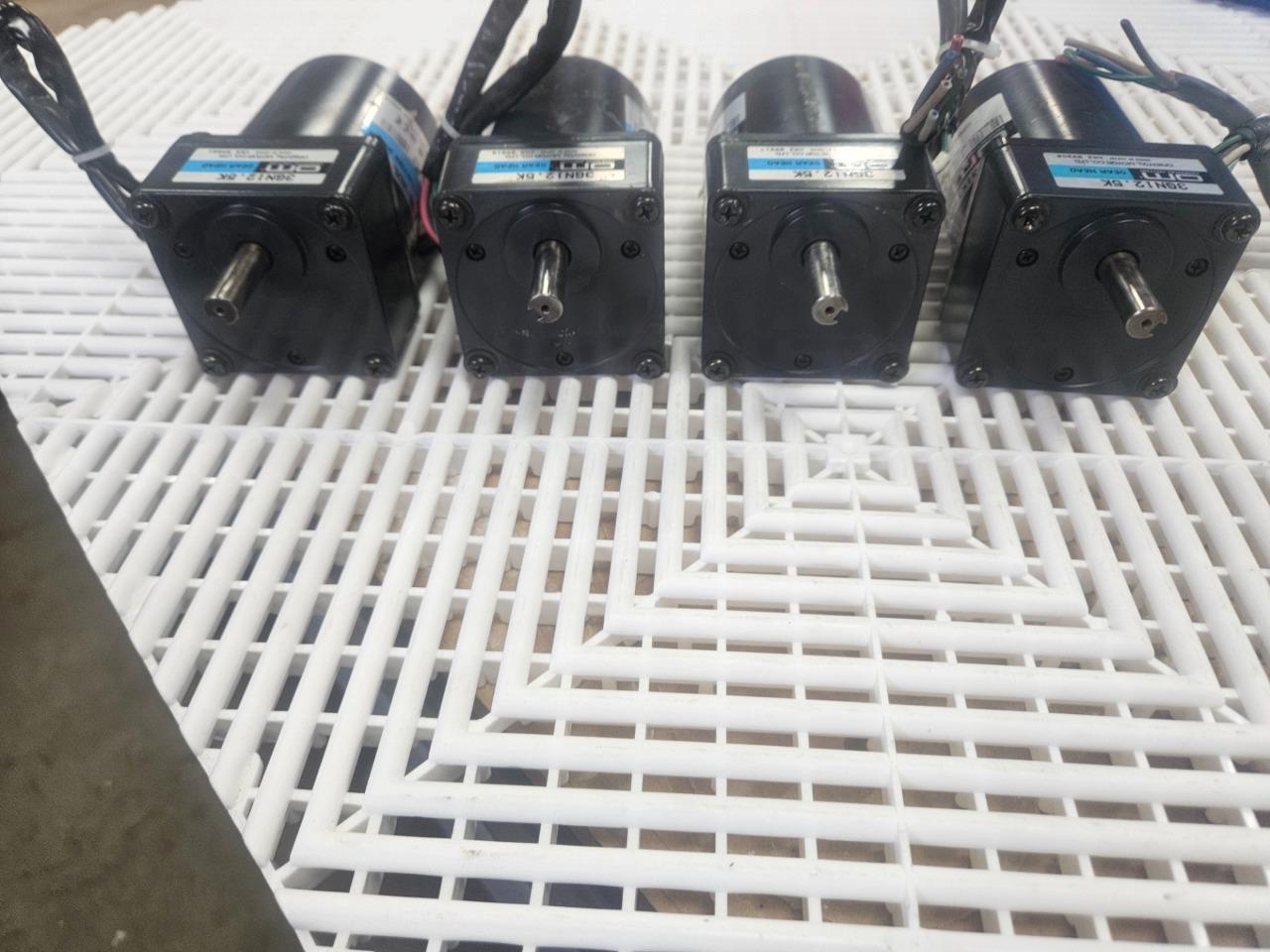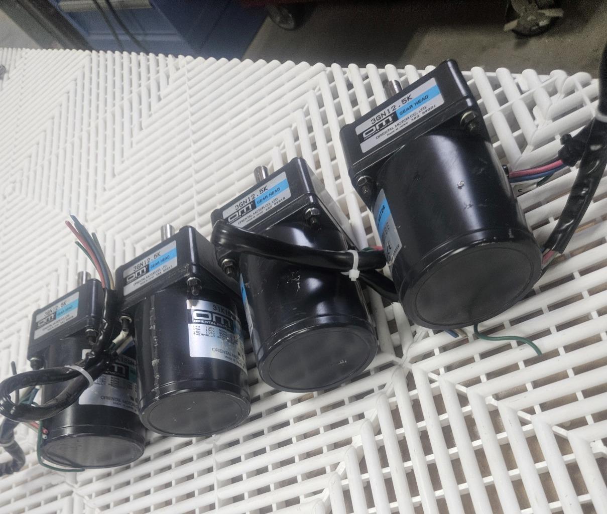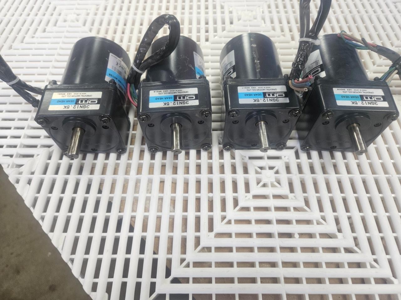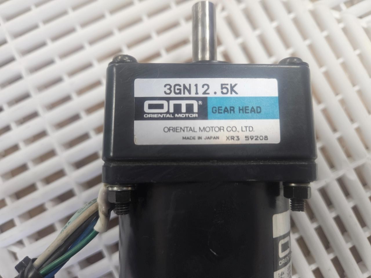 Here are some Oriental motors with gearheads attached. These are rated for 100-115V AC single phase. They include 12.5:1 gear reducers. They have a few light scuffs on the labels, but otherwise are in good running and cosmetic shape. Each purchase is for one motor + gearhead.Â